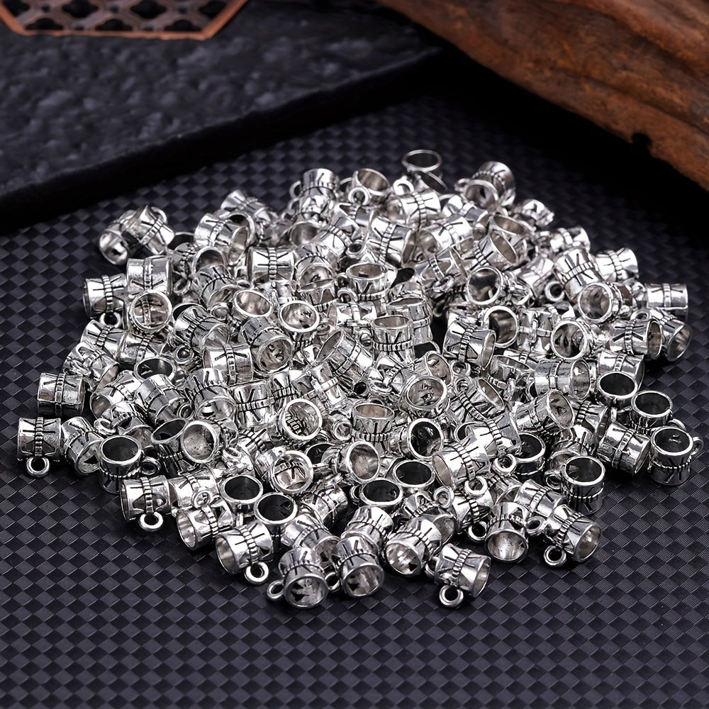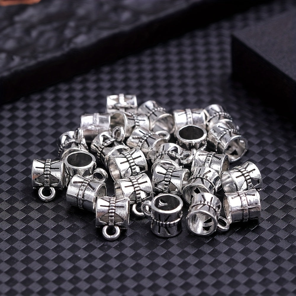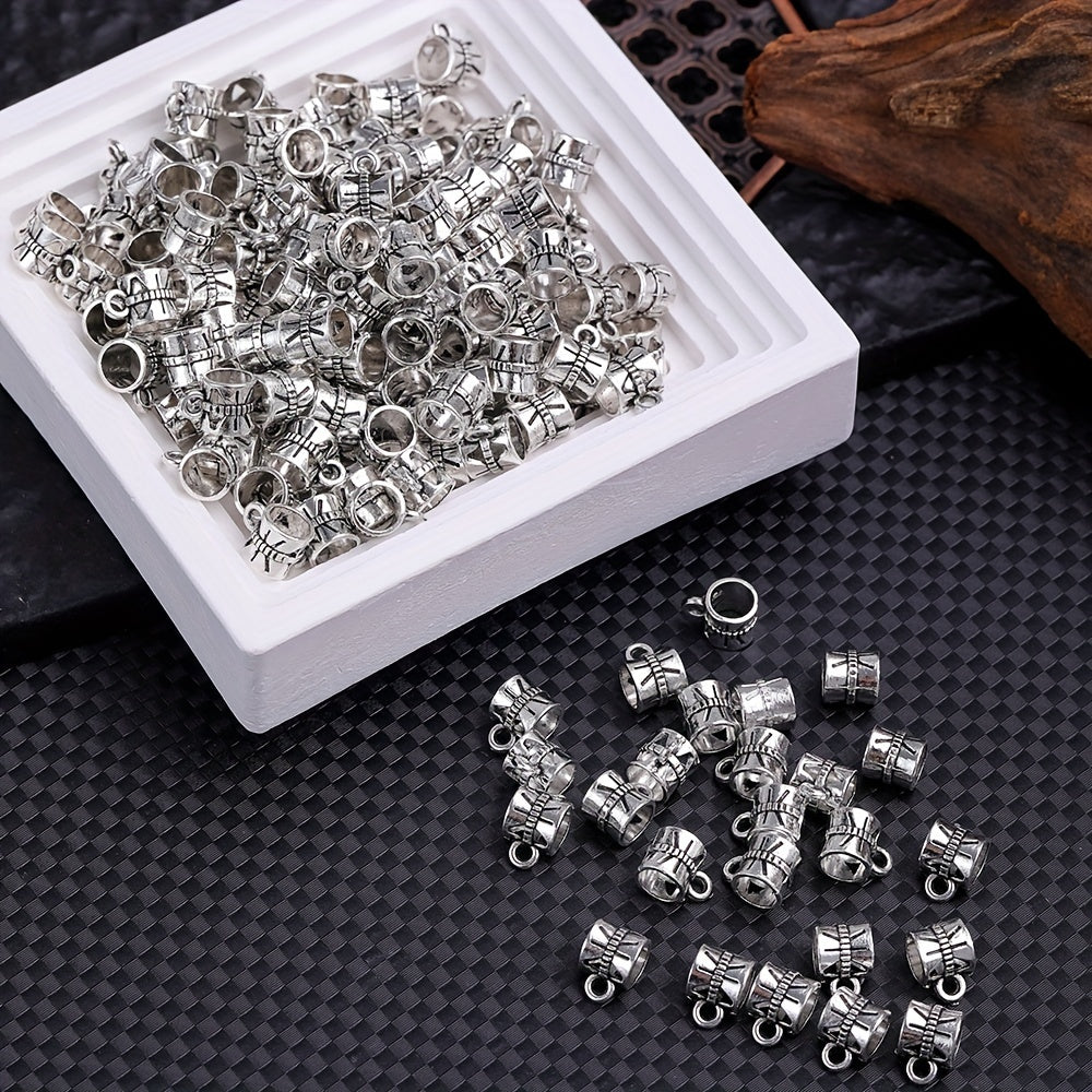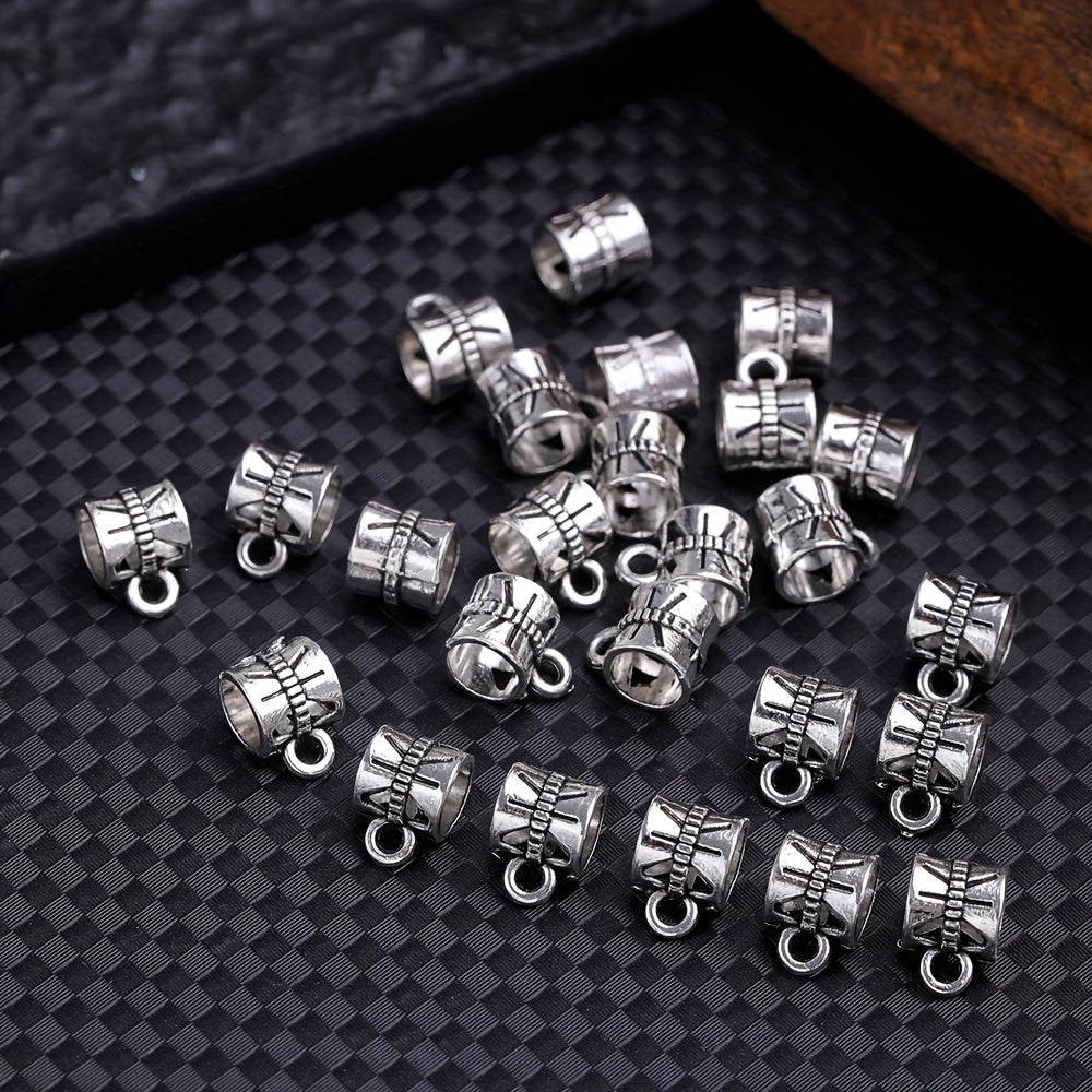 These antique alloy pendant clasp bail beads are perfect for creating unique necklaces and bracelets. Use them to add a touch of vintage charm to your jewelry designs.