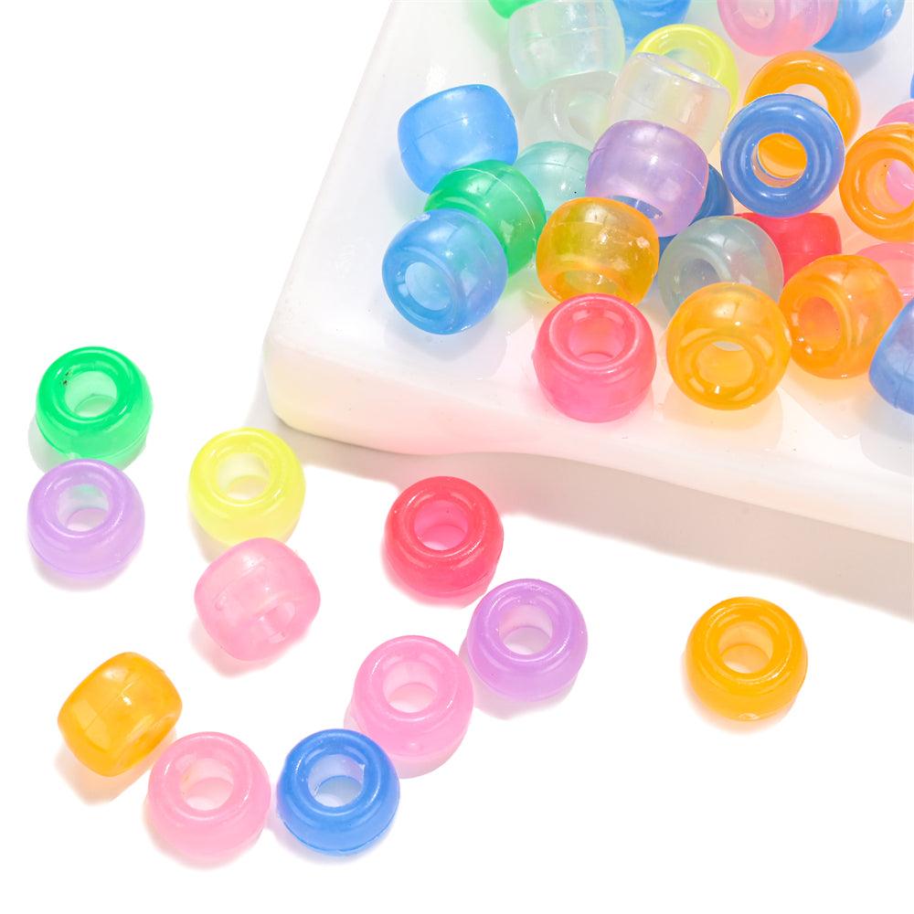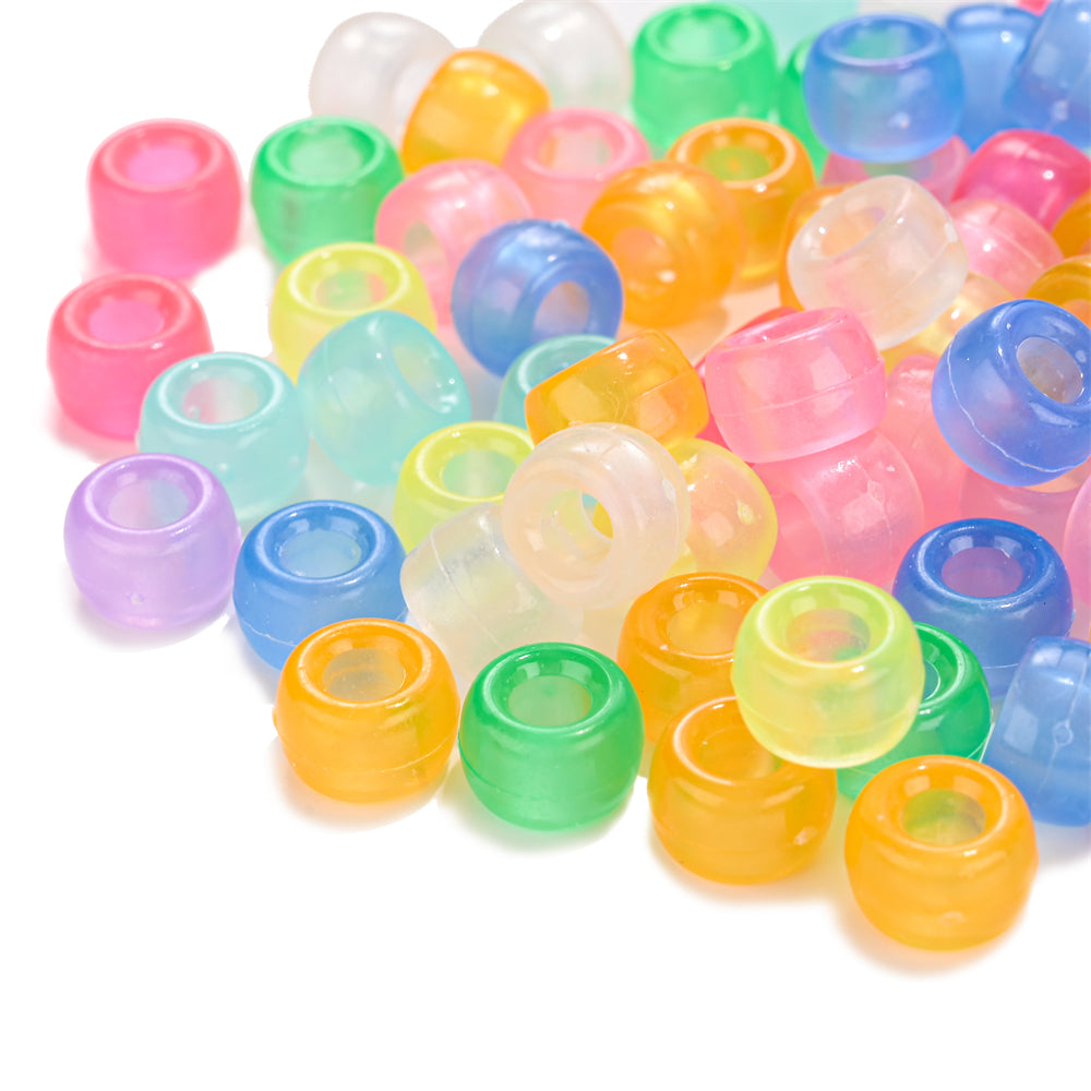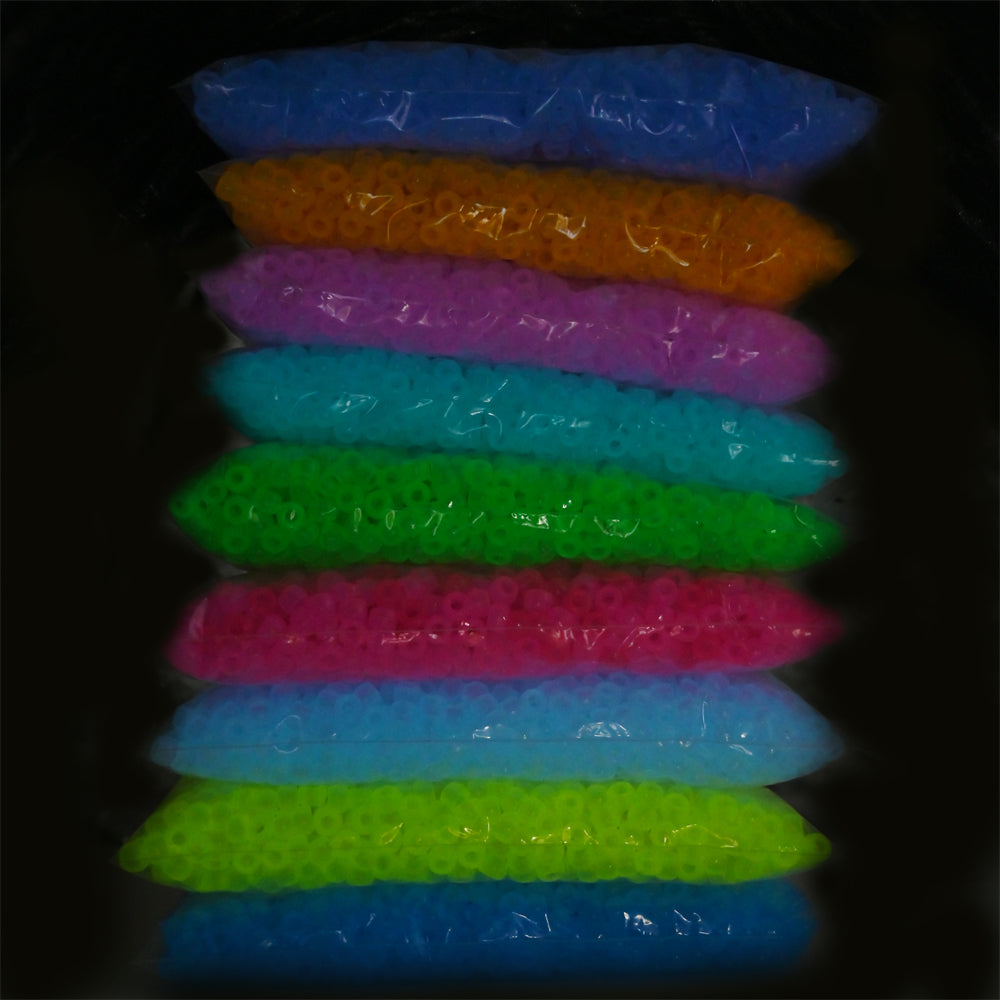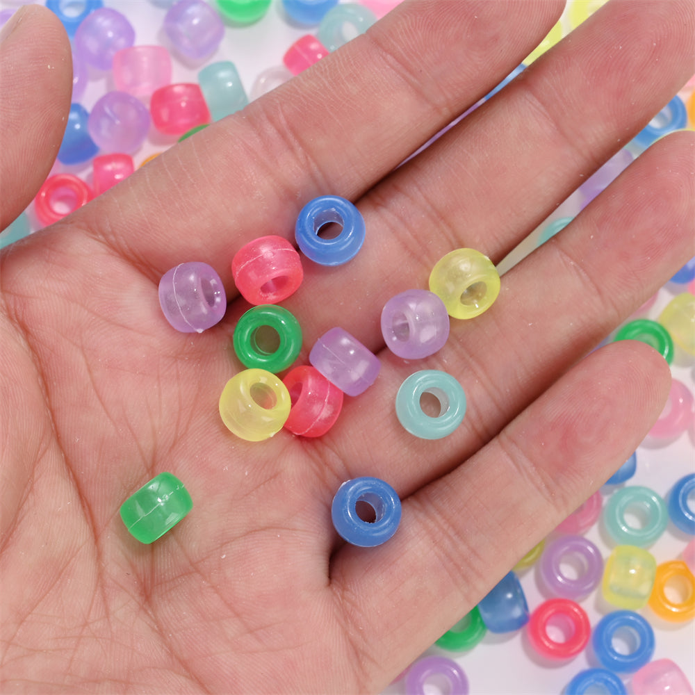 These glow-in-the-dark acrylic beads are perfect for making bracelets, necklaces, and ornaments. They measure 6x9mm (0.23-0.35 inches) and come in a mix of colors.