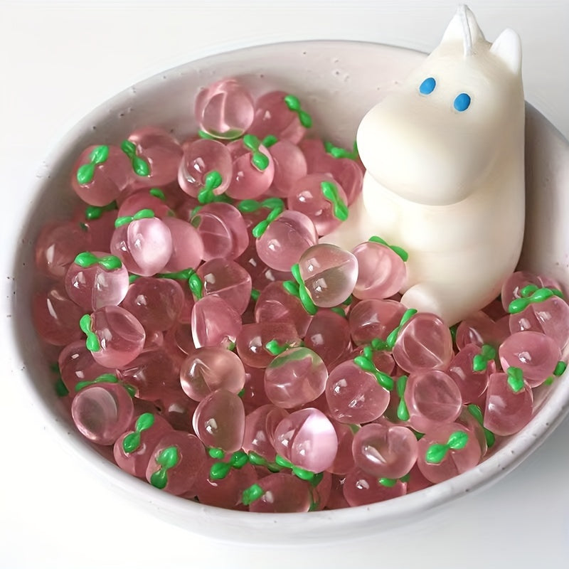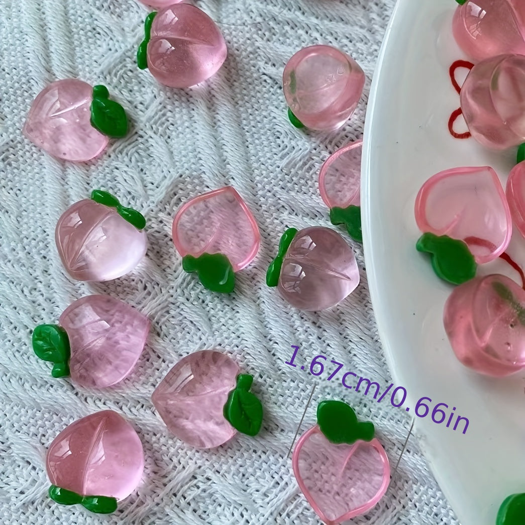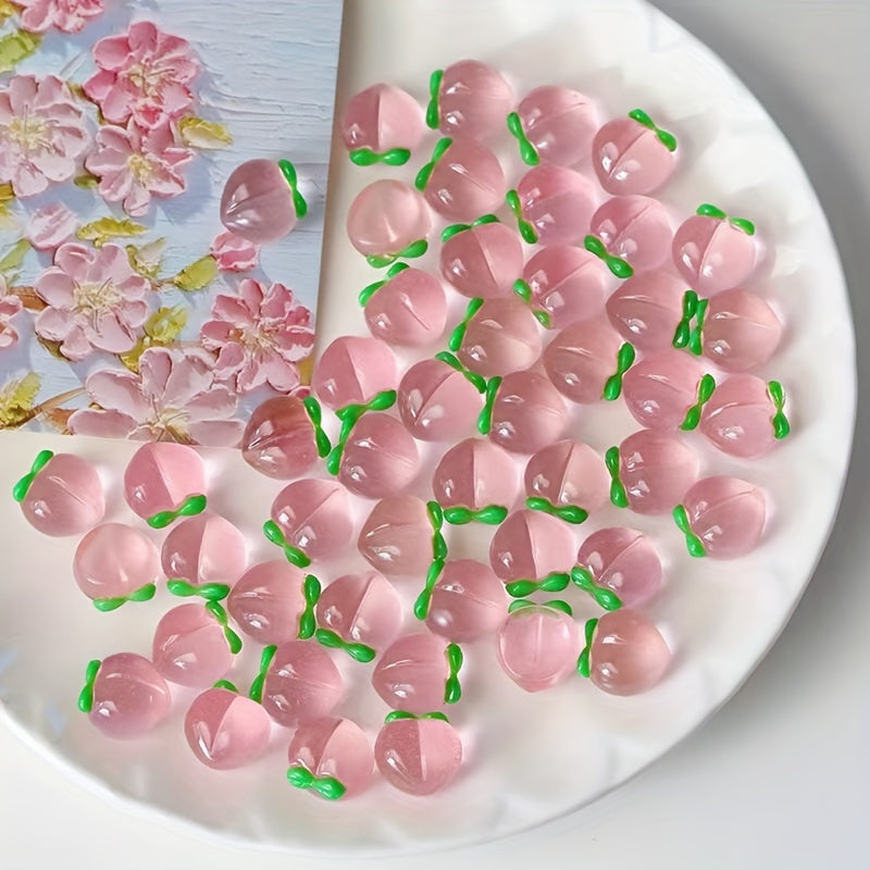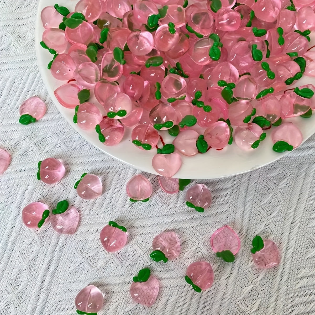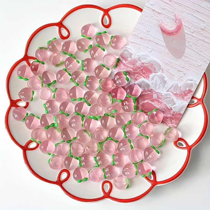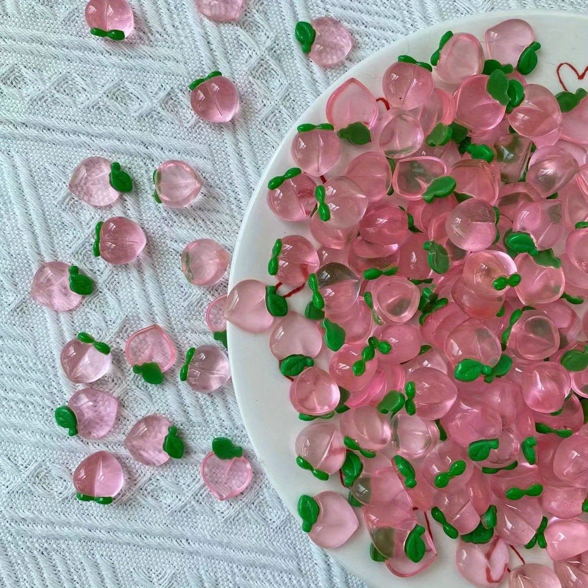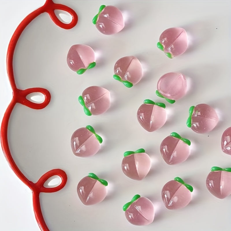 Add a touch of charm to your DIY projects with these 50pcs transparent pink acrylic peach patch charms. Ideal for hair clips, phone cases, photo frame embellishments, wall decorations, and scrapbook crafts.