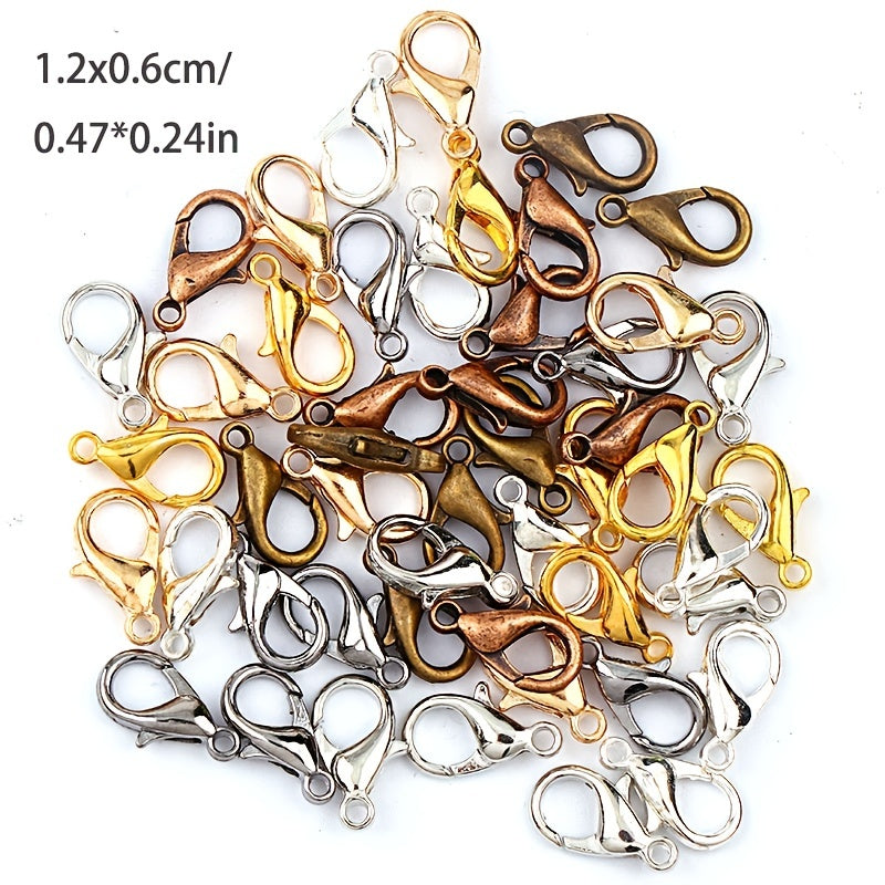 These lobster clasps are made of zinc alloy, perfect for making jewelry. Each pack contains 50 pieces of lobster clasps that measure 12mm x 6mm.