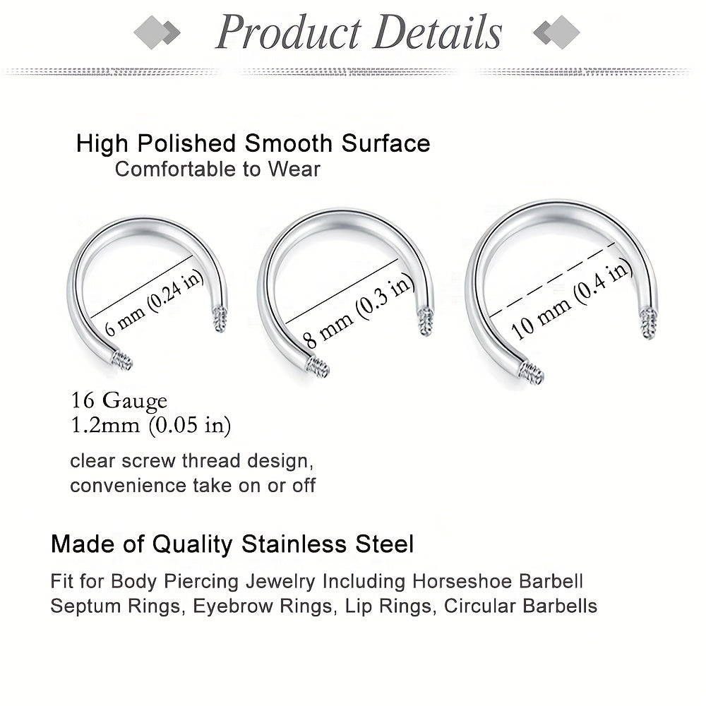 • Suitable for various piercings like belly, tongue, septum, eyebrow, lip, and more