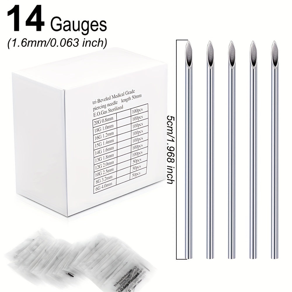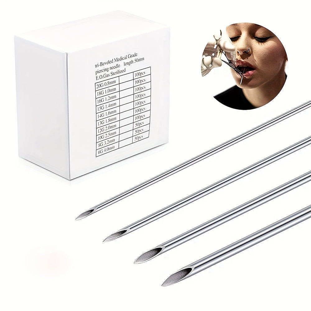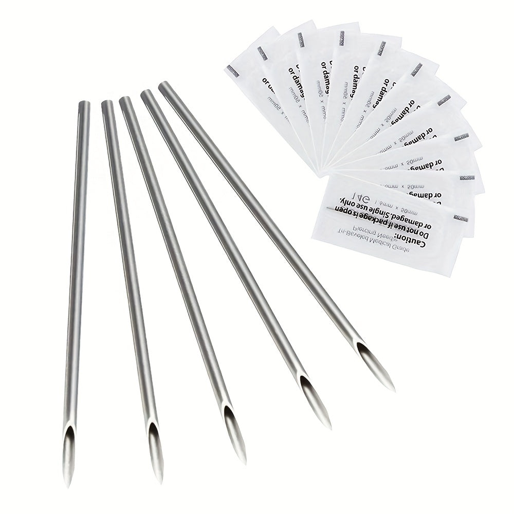 Get a pack of 5 individually wrapped stainless steel disposable piercing needles for men. Each needle is sterile and ready for use.