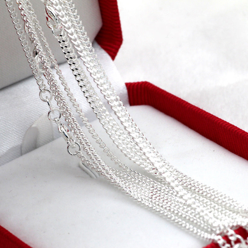 Add a touch of elegance to your outfit with this set of 5 silver-plated brass chain necklaces. Perfect for parties and special occasions.