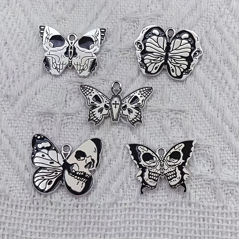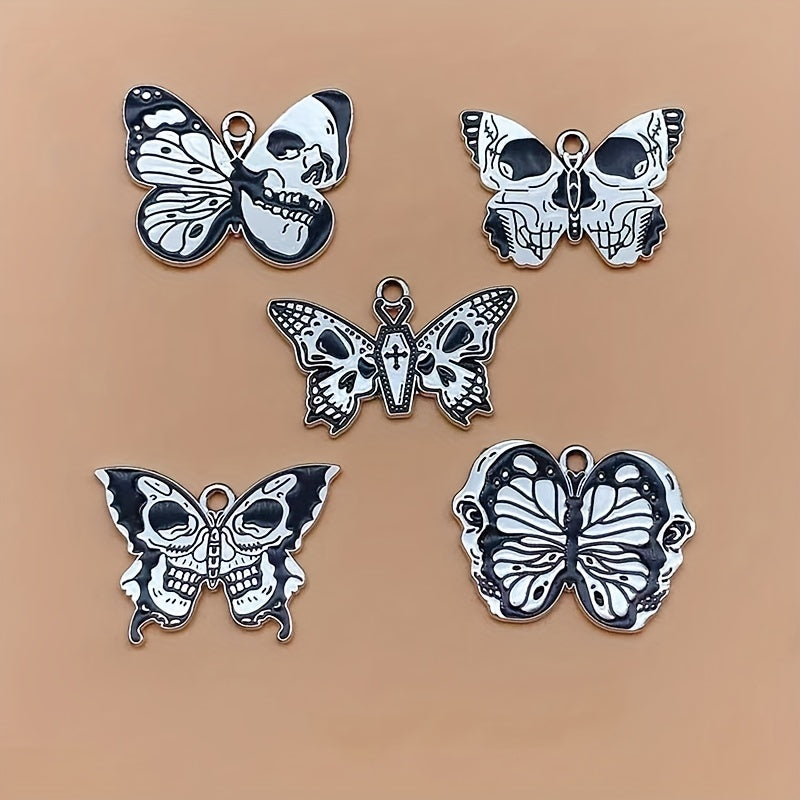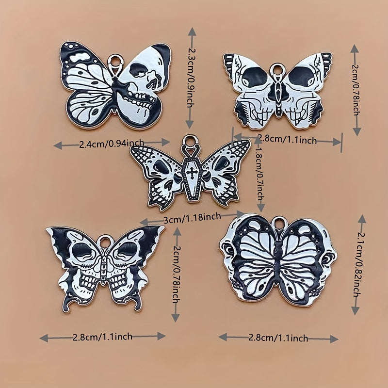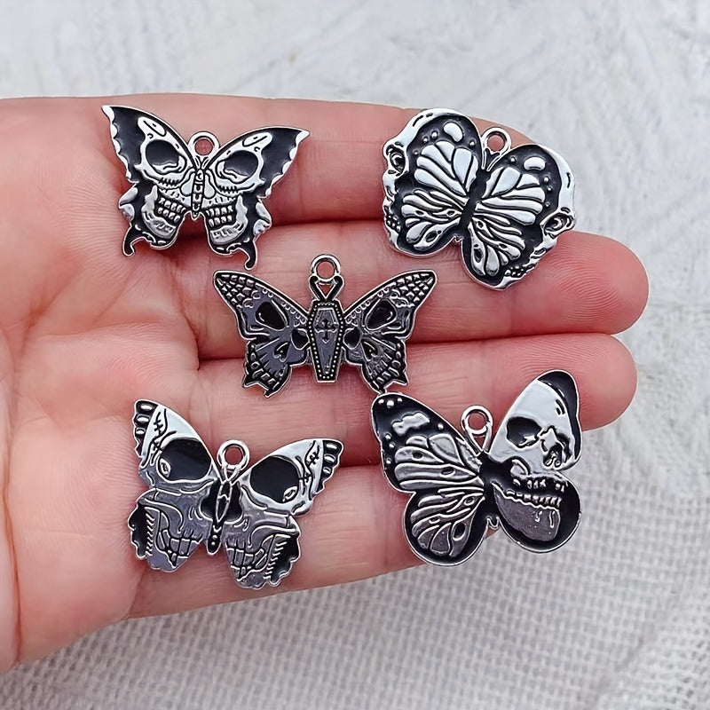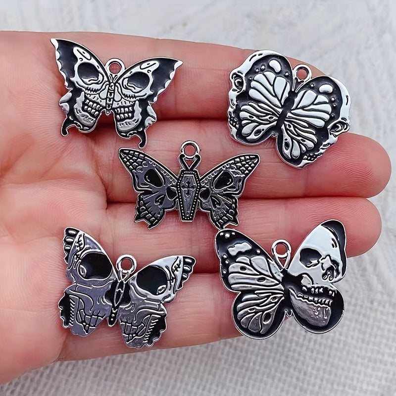 Create unique jewelry with these punk style enamel pendants featuring skeleton butterfly moth designs. Use them to make earrings, bracelets, necklaces, and other accessories.