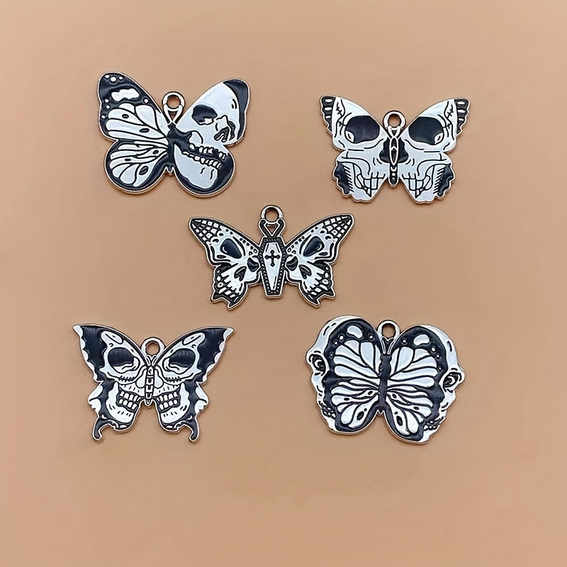 • Set of 5 enamel pendants with punk skeleton butterfly moth designs