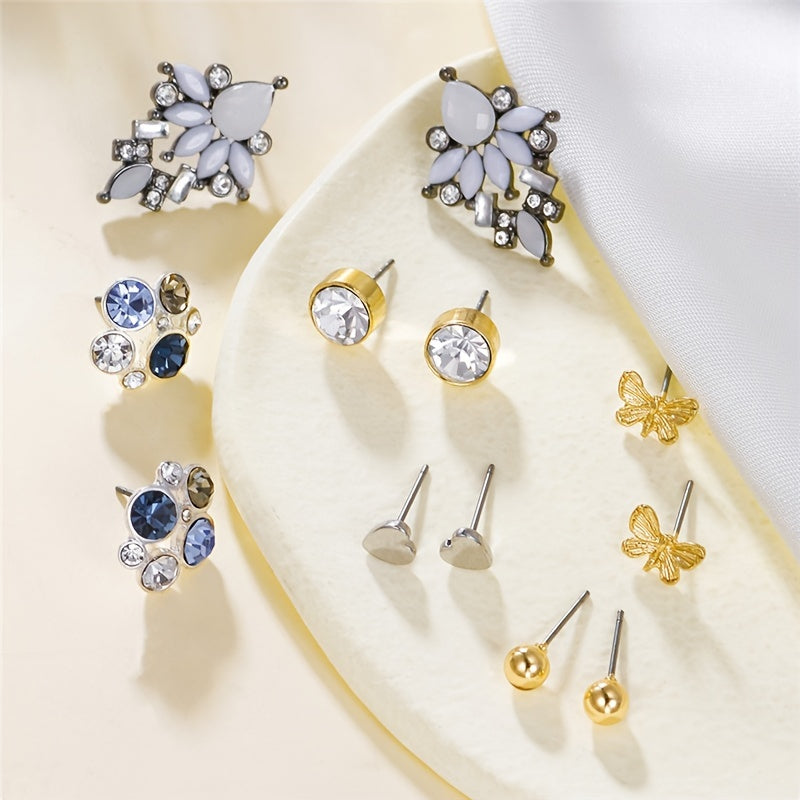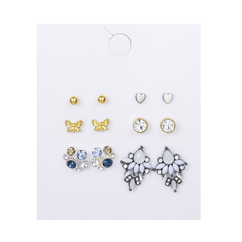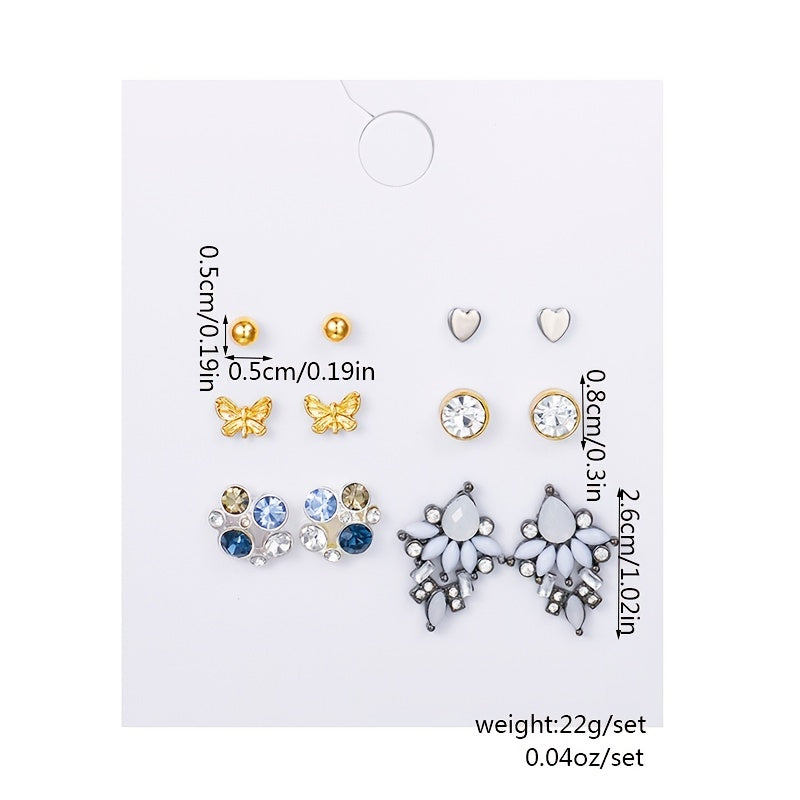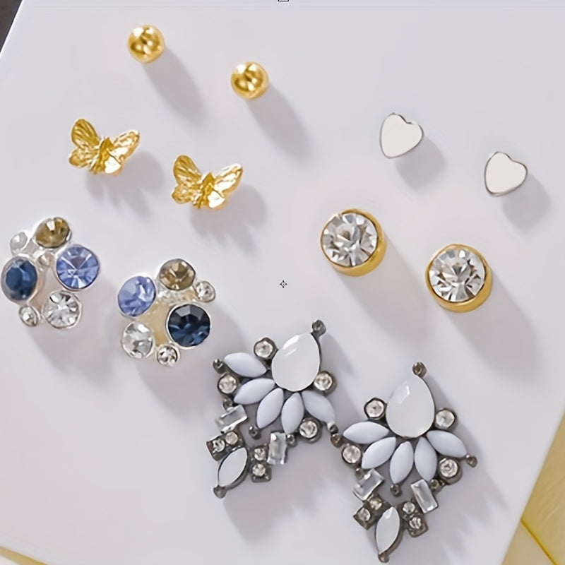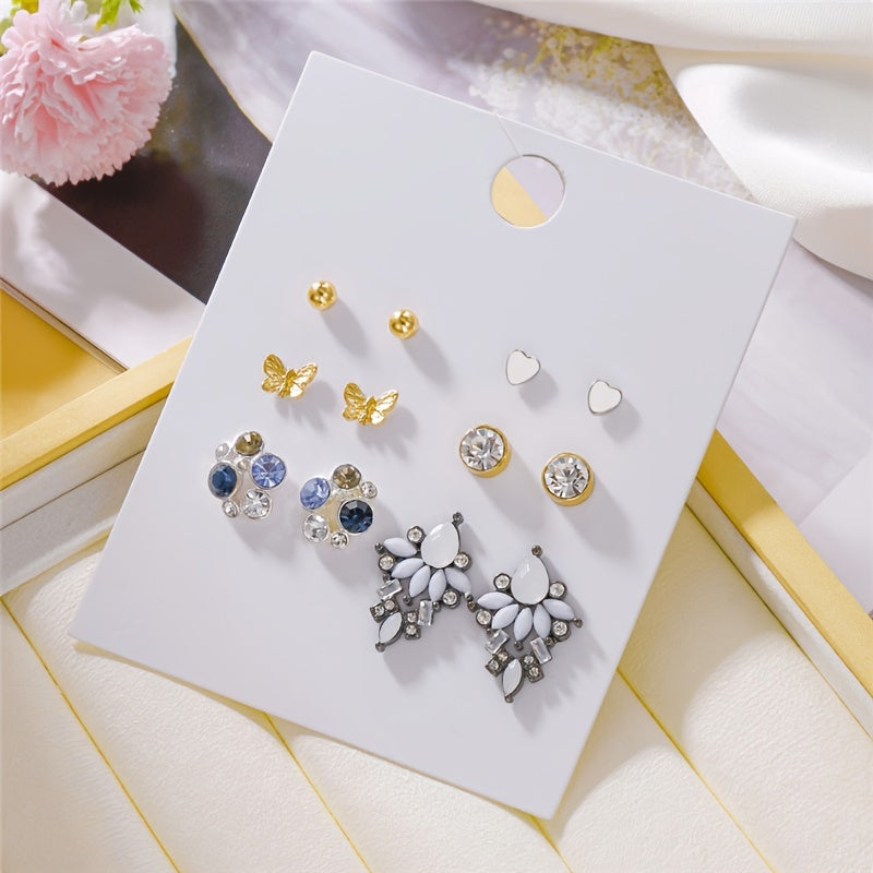 This set includes 6 pairs of butterfly stud earrings with rhinestone decoration, made from zinc alloy. Perfect for female fashion lovers.