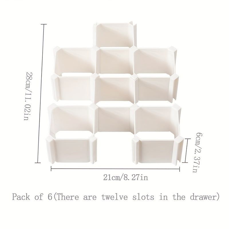 This set includes 6 honeycomb drawer dividers for organizing socks, jewelry, or other small items. The dividers are square and detachable, allowing for easy customization. Create your own storage box with this versatile system.