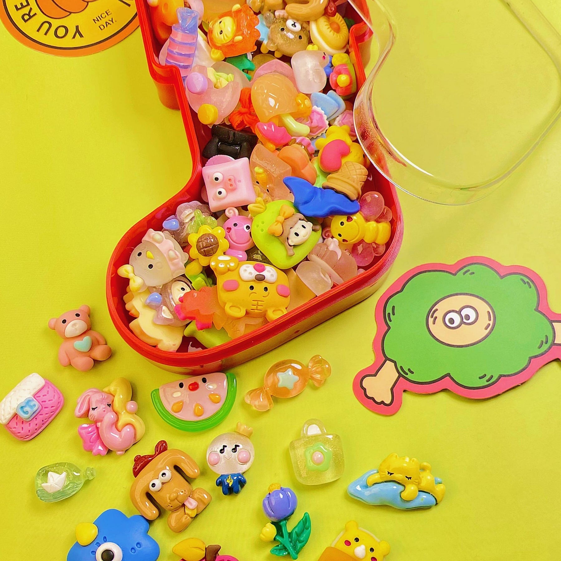 Get this 60-piece set of colorful 3D three-dimensional cartoon stickers featuring various Christmas patterns. These resin charms come in a Christmas-style box, making them perfect as a holiday gift.