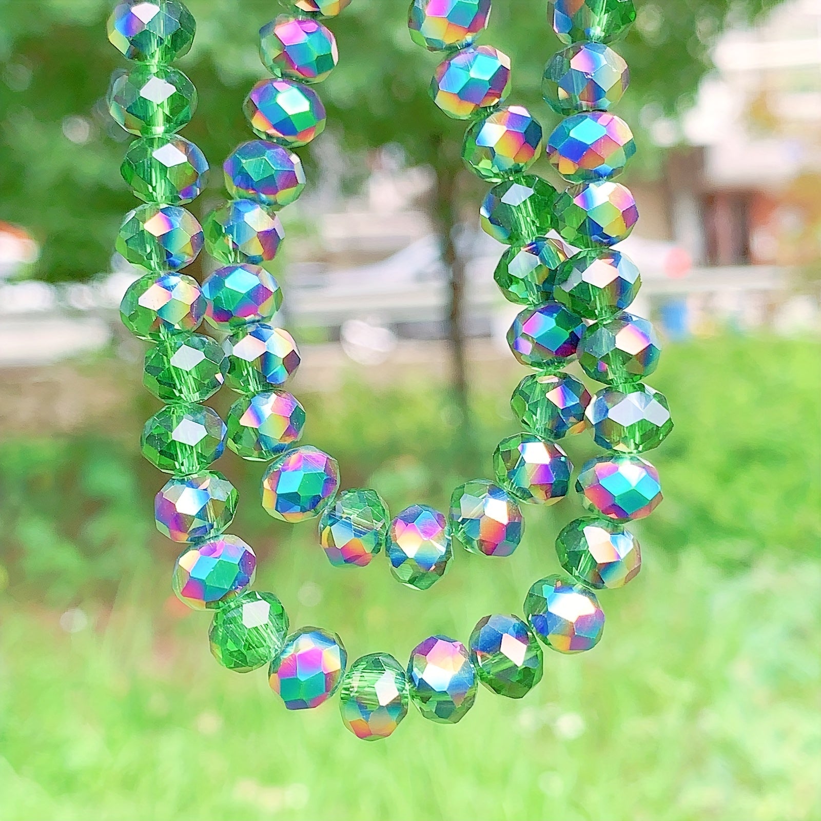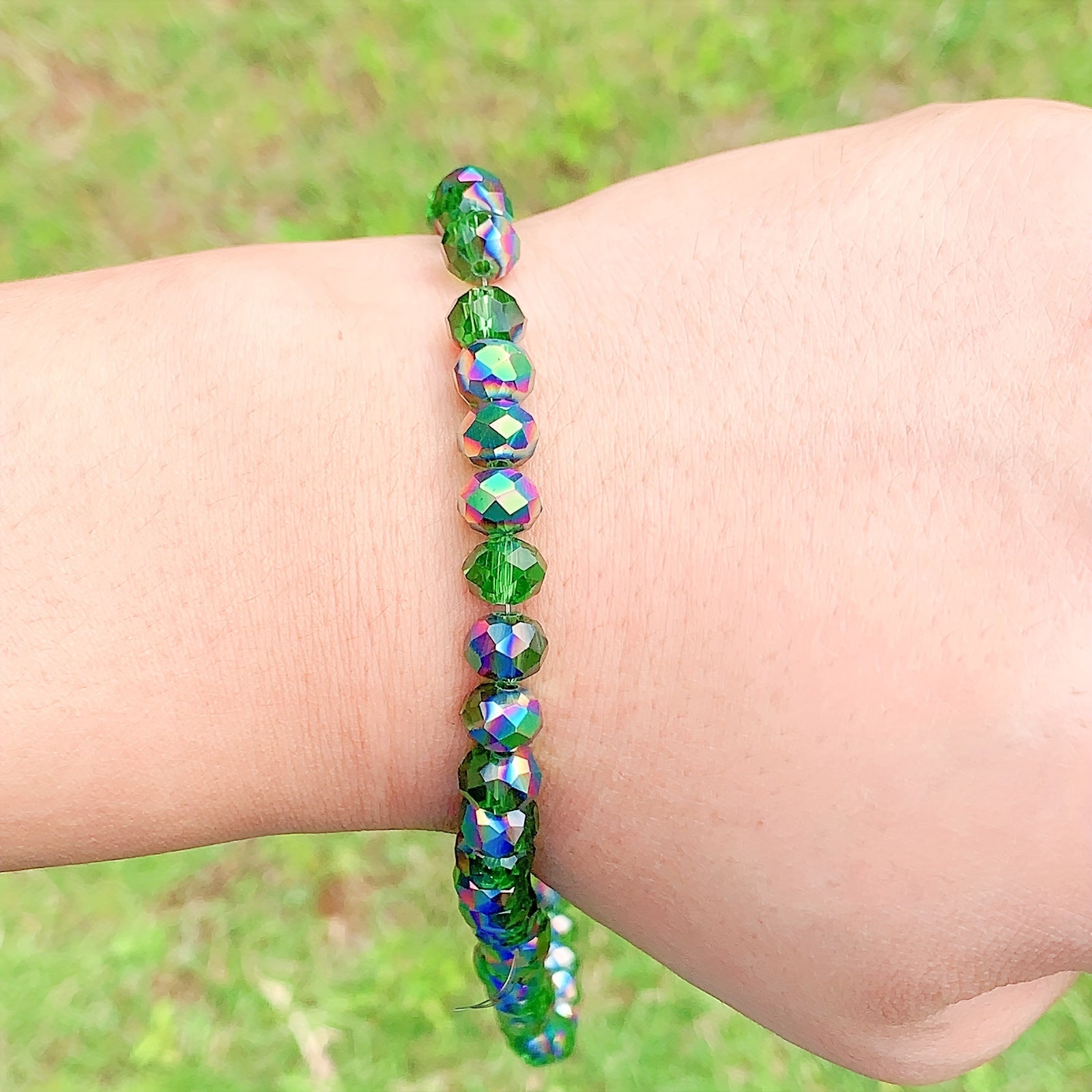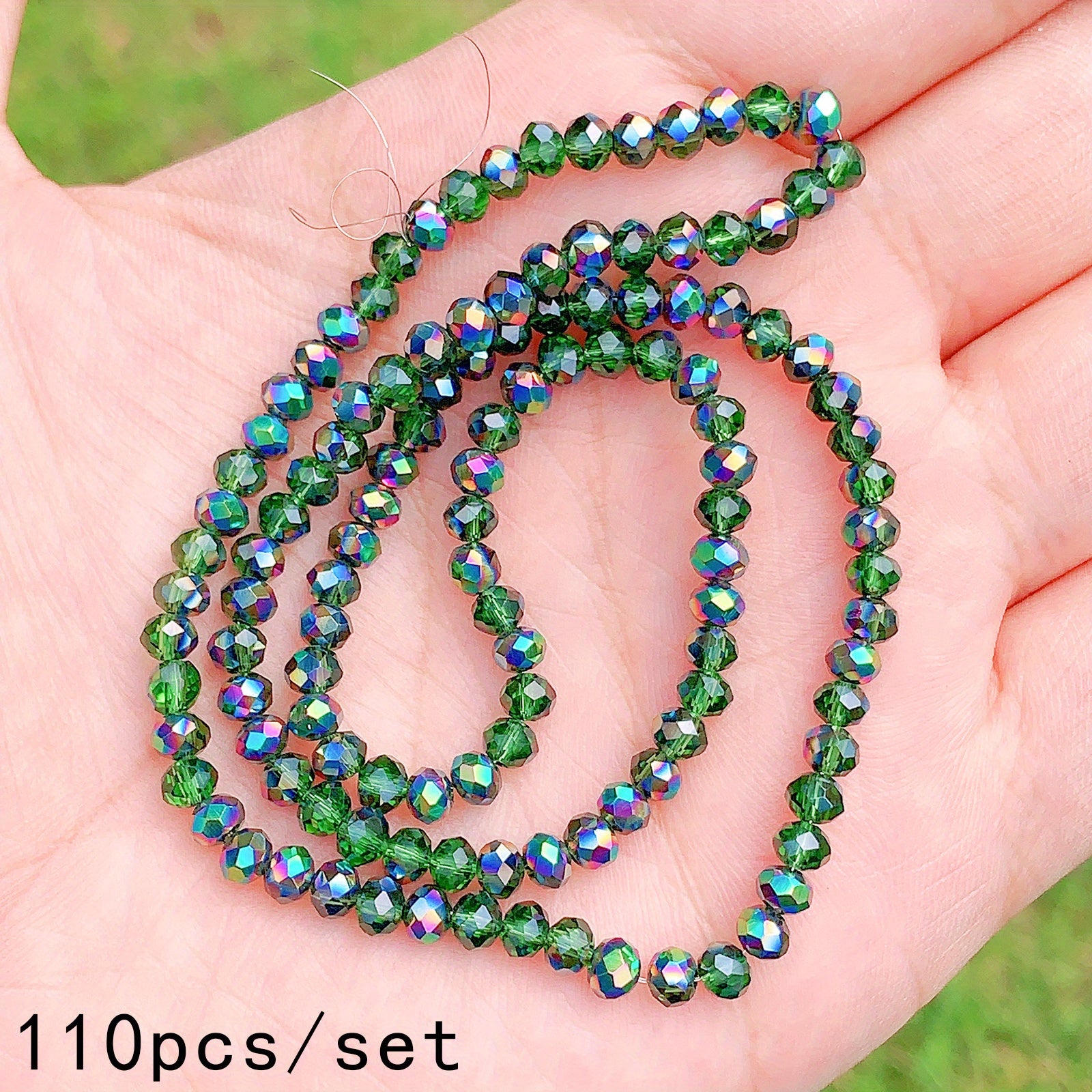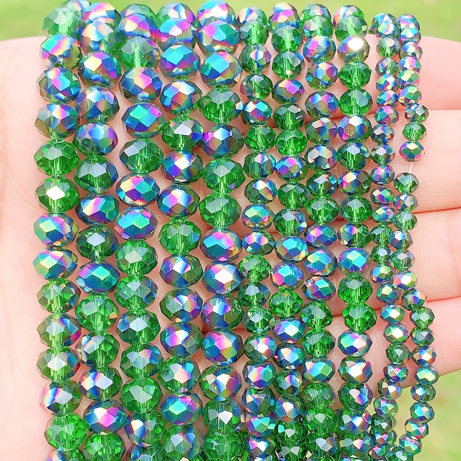 This set includes 60 flat round green crystal beads perfect for creating earrings, bracelets, necklaces, and other accessories. The beads are 4mm, 6mm, and 8mm in size.