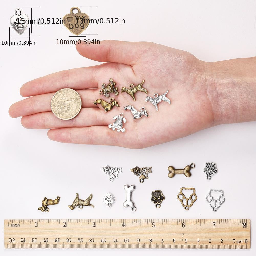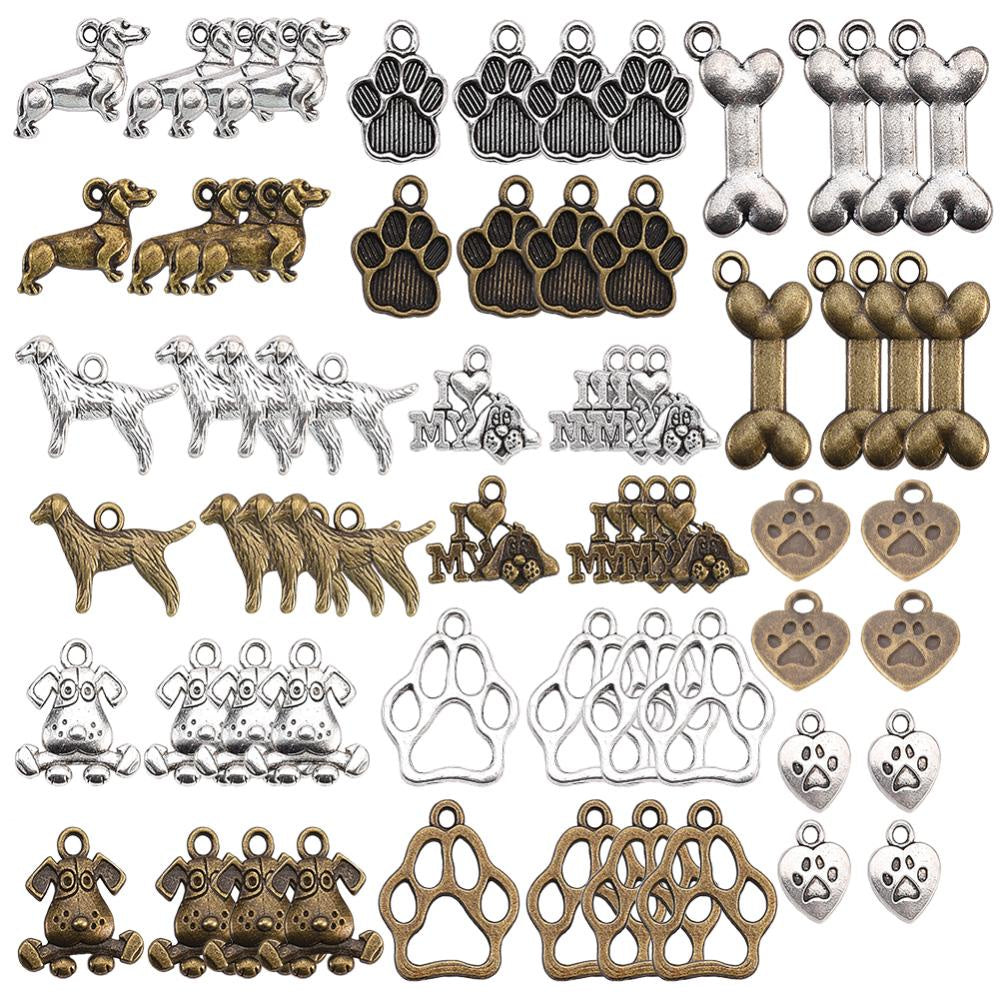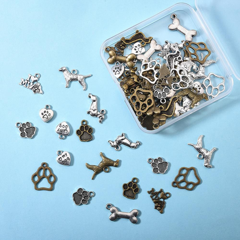 Get 64 pieces of various animal paw print pendant charms for creating your own unique necklaces, bracelets, and earrings. These pendants are lead and nickel-free, perfect for any pet or animal lover.