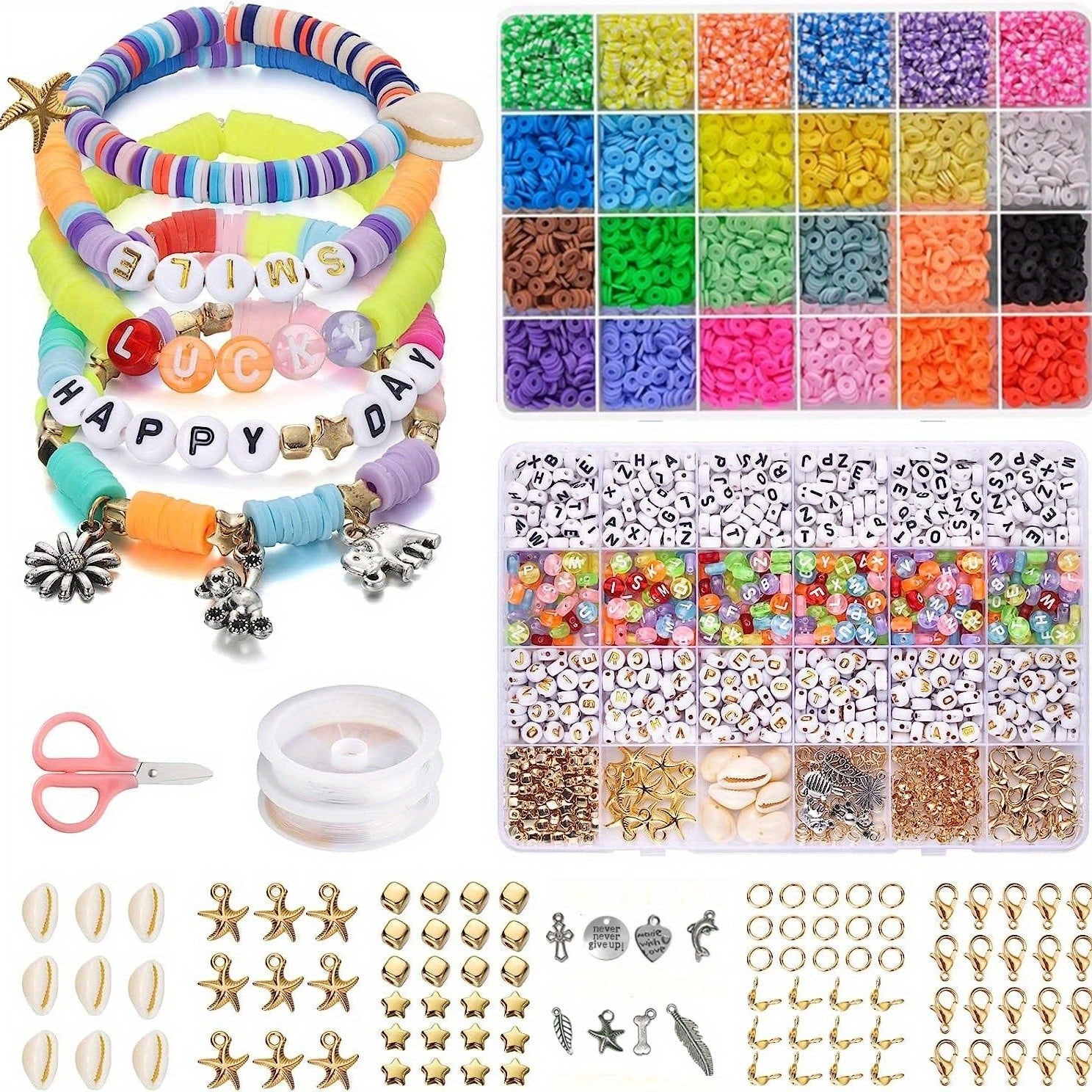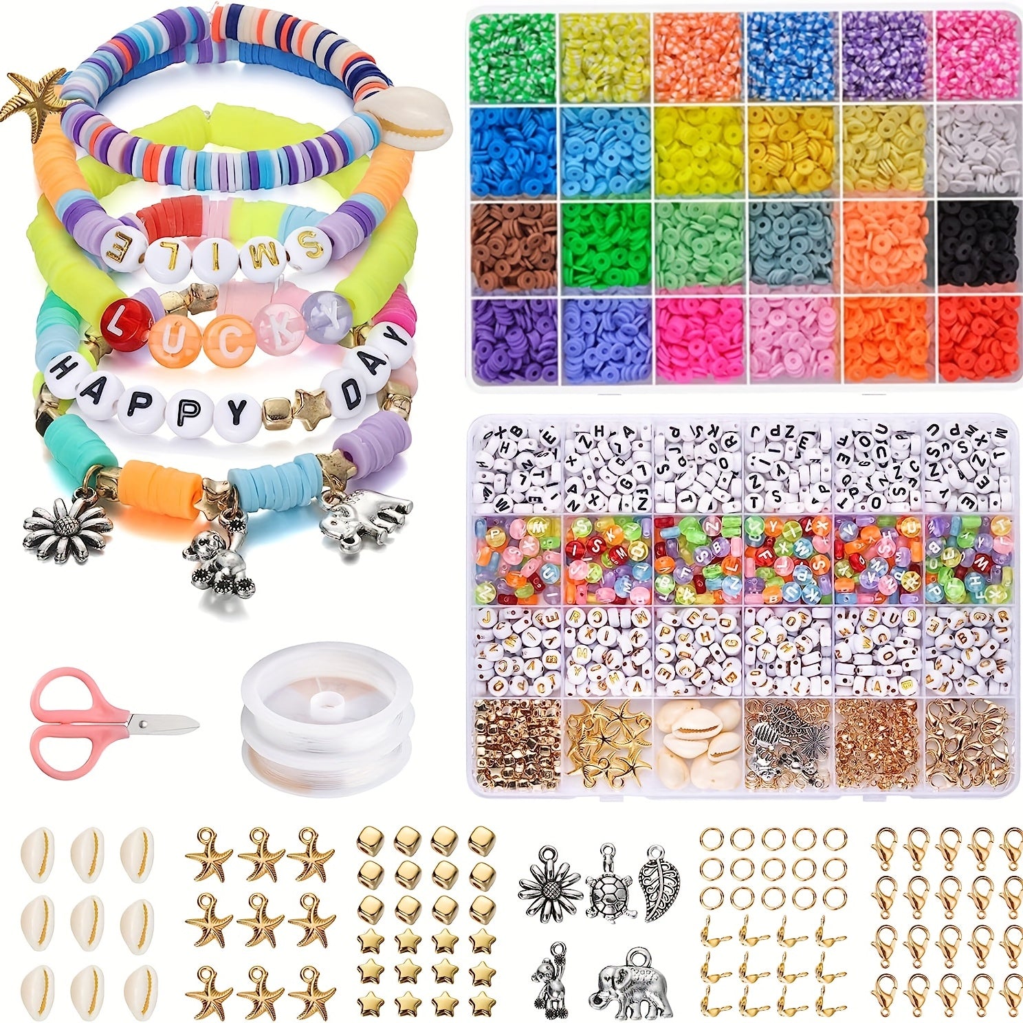 Create personalized clay bead bracelets with this kit that includes 6600 pieces of beads in 24 colors. Features polymer letter pendants and charms to add a unique touch.
