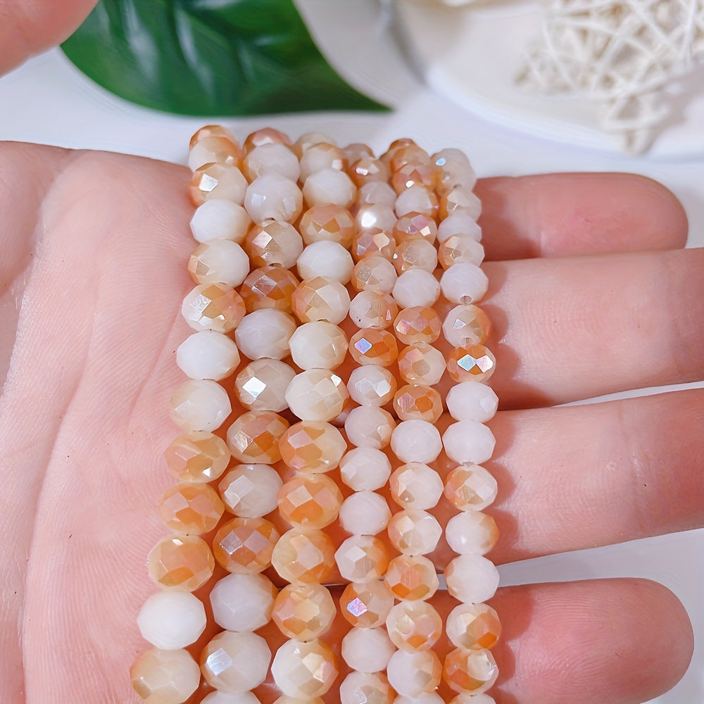 These semi champagne faceted jade glass ceramic beads are perfect for making earrings, bracelets, necklaces, and other accessories.
