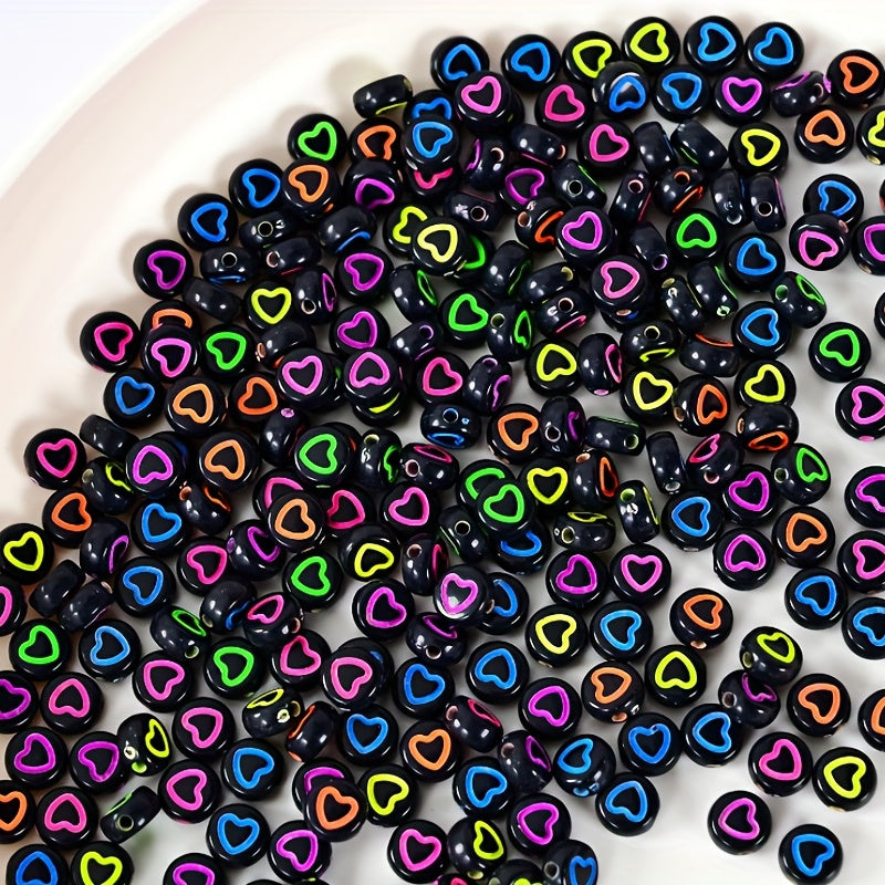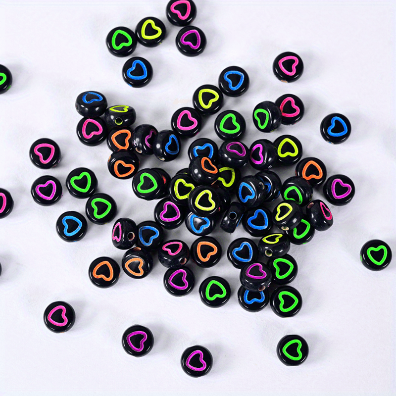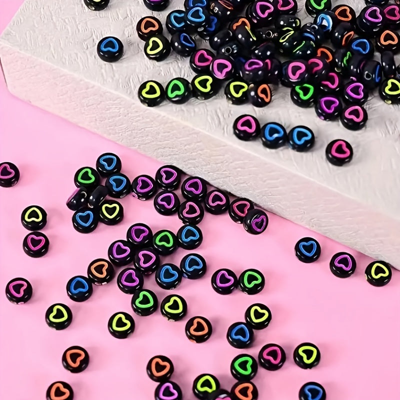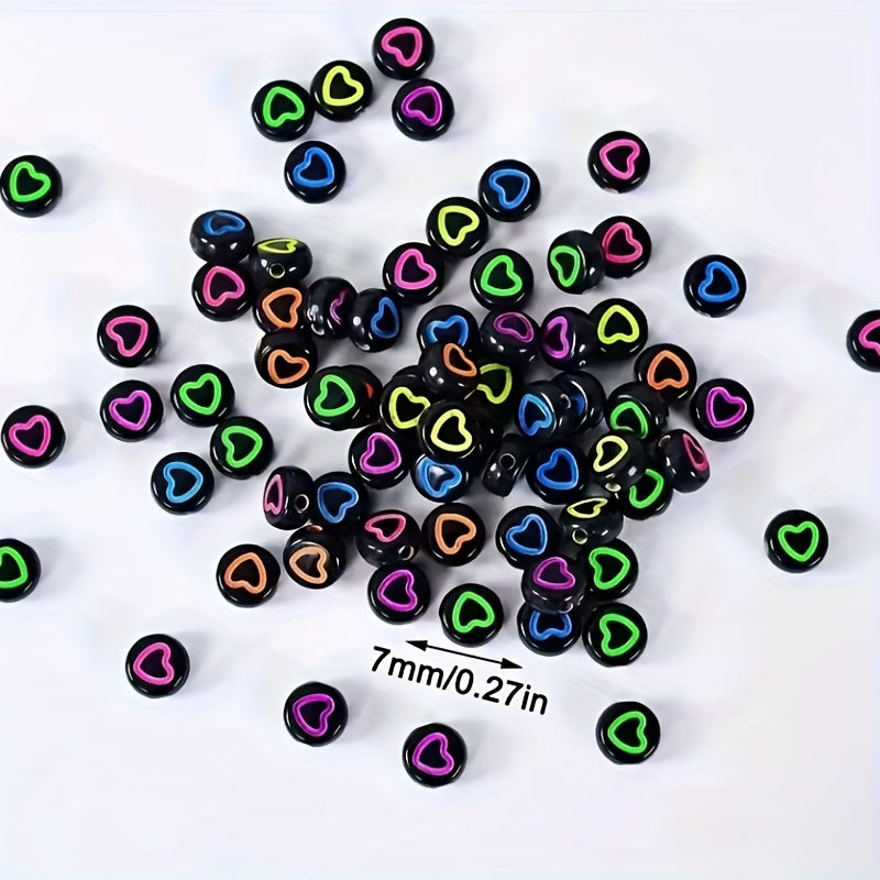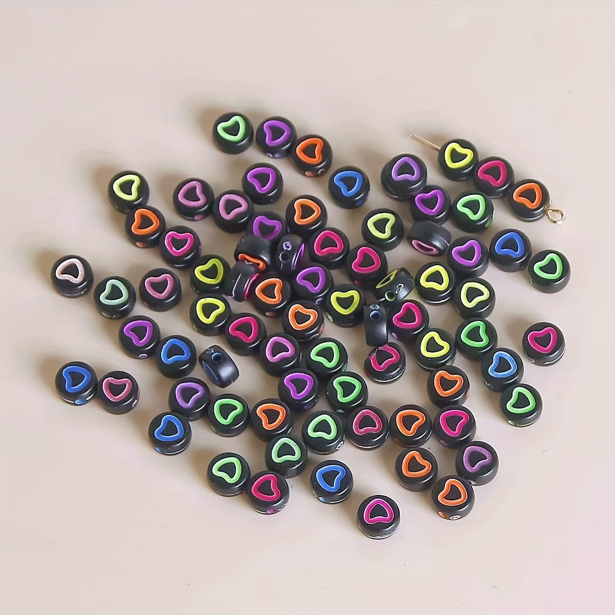 These colorful flat round beads feature heart patterns, perfect for creating earrings, bracelets, necklaces, and other accessories. Let your creativity shine with this set.