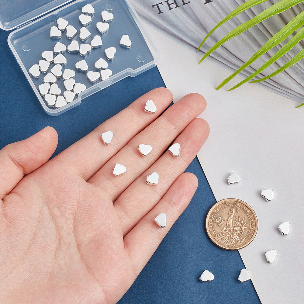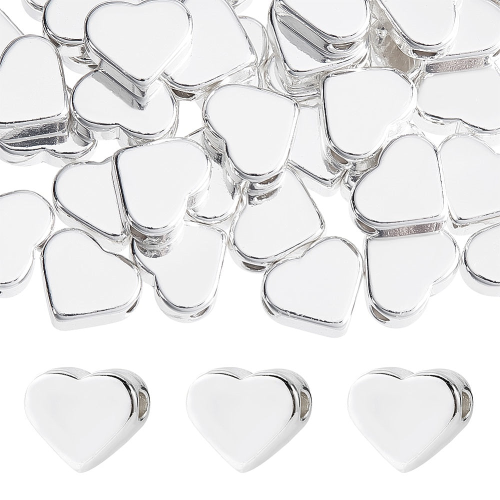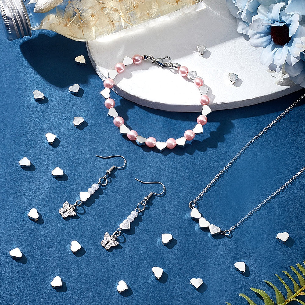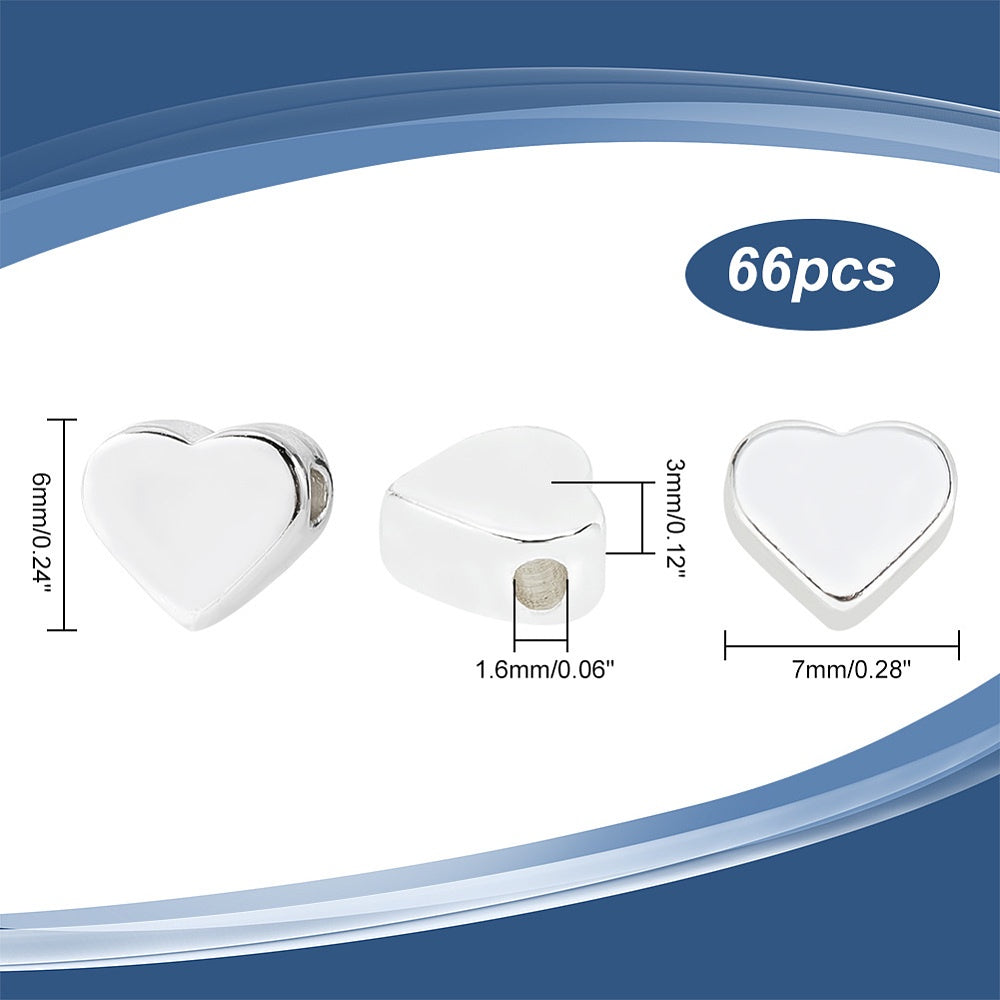 Enhance your DIY projects with this set of 66 silvery heart-shaped brass beads. Perfect for earrings, bracelets, necklaces, and other accessories.