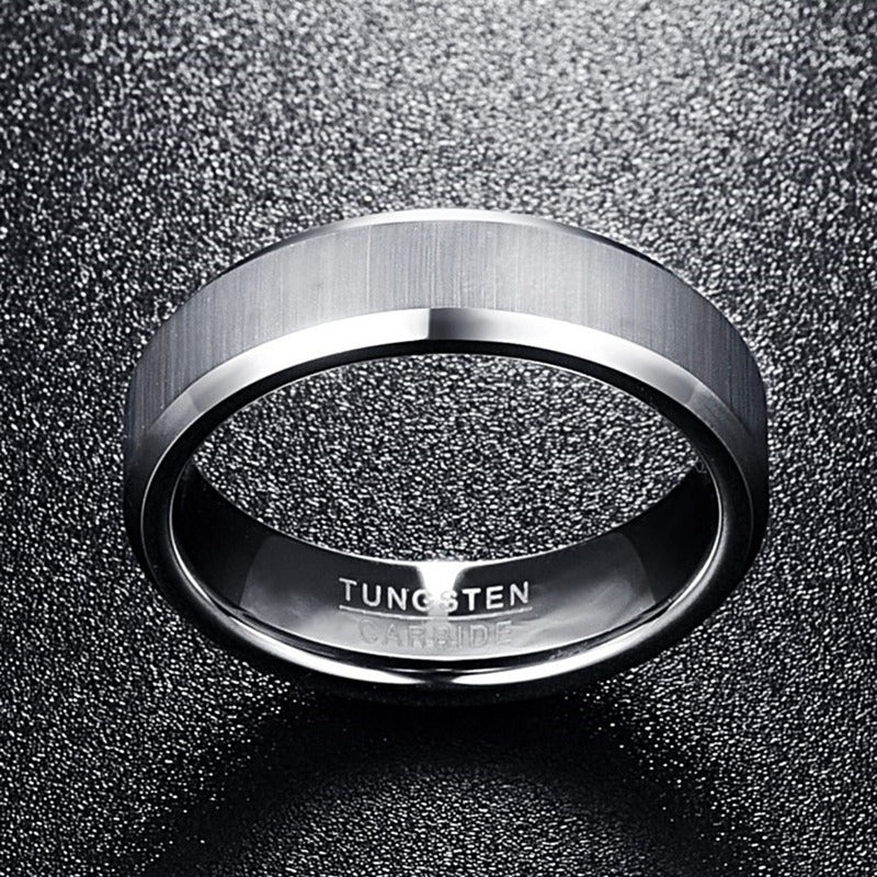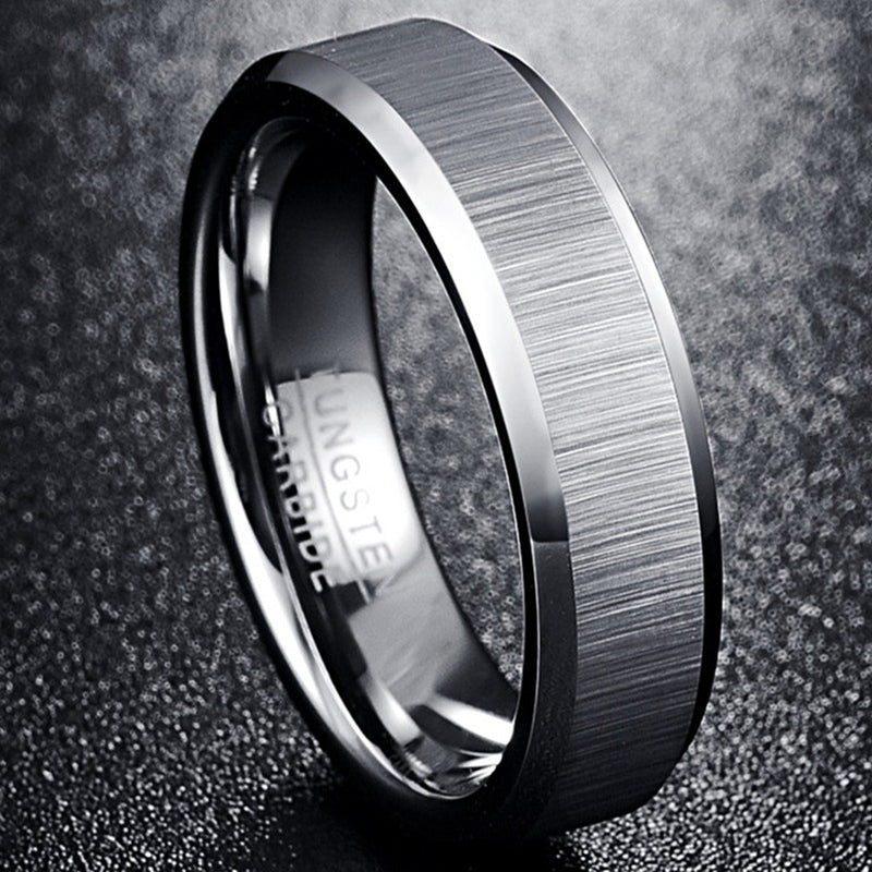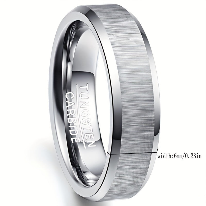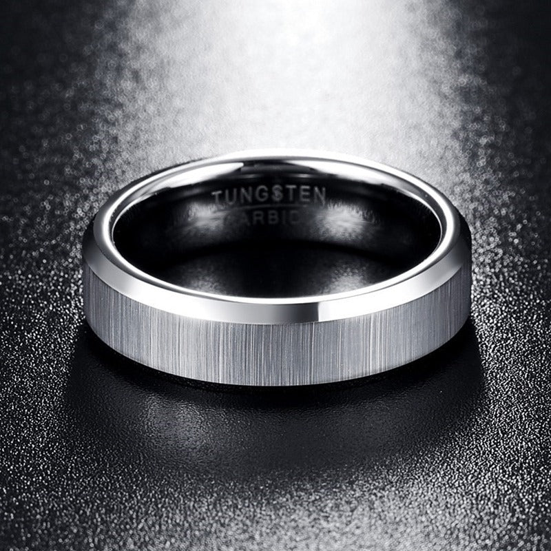 This 6MM wide men's tungsten ring features a true lashing process and a brushed beveled edge design. Ideal for weddings or everyday wear.