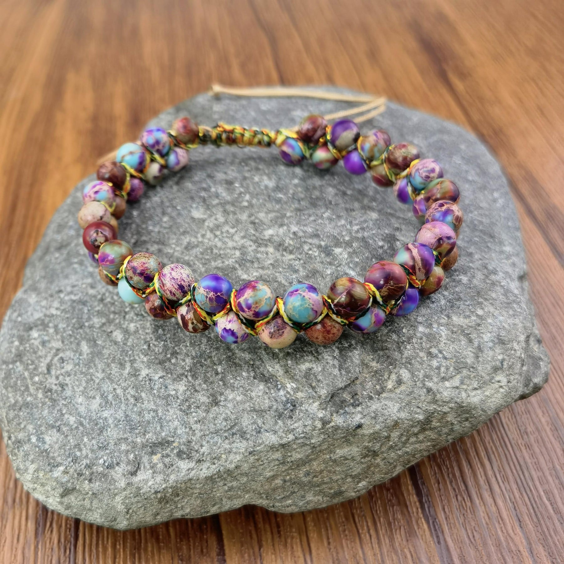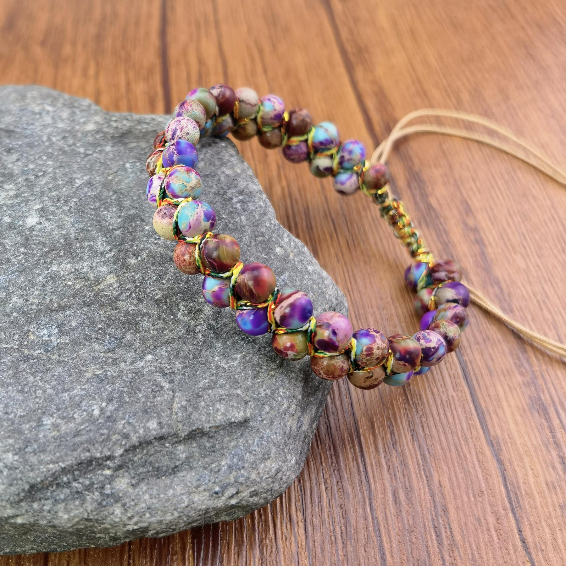 This colorful adjustable bracelet made of tiger eye stone beads is a perfect holiday gift for boyfriends or girlfriends.