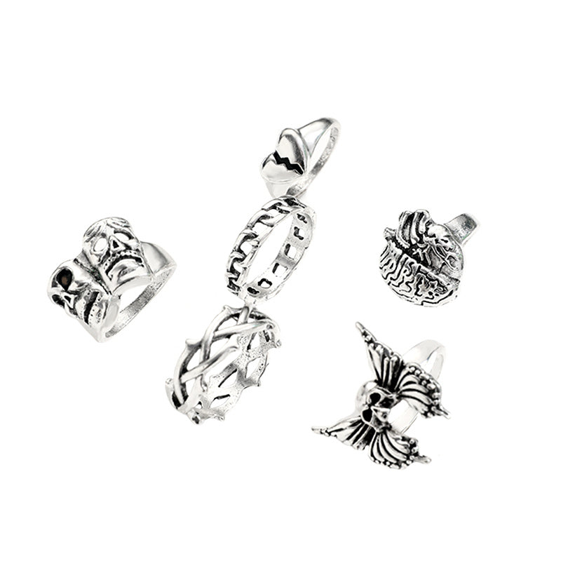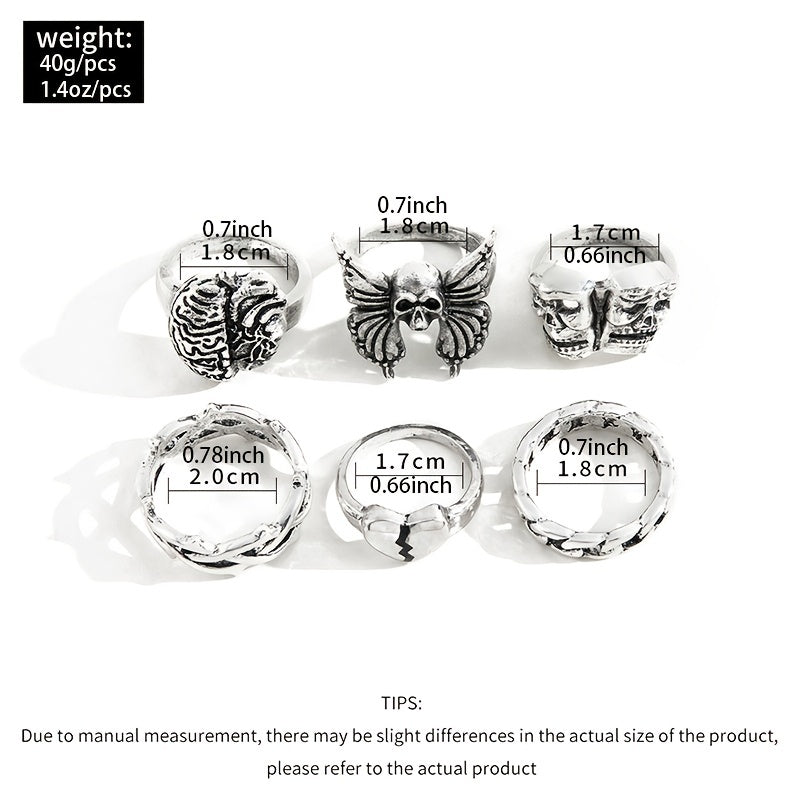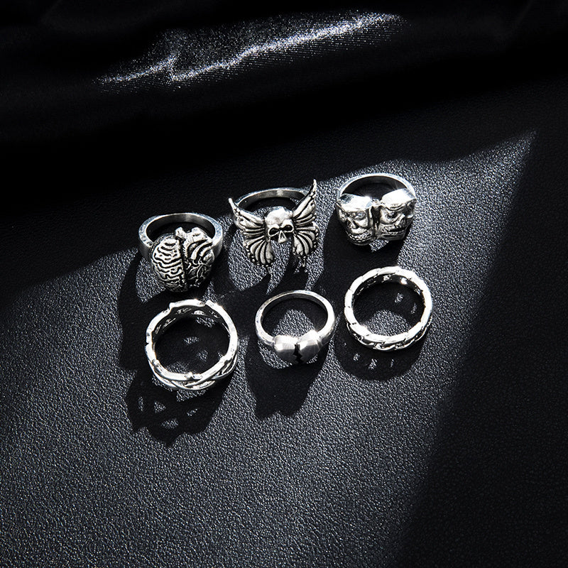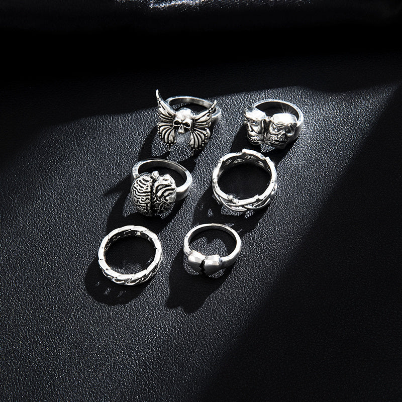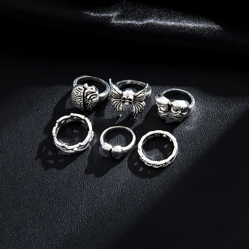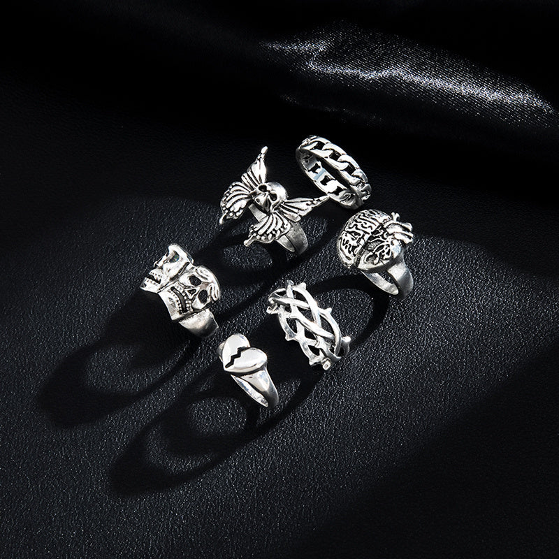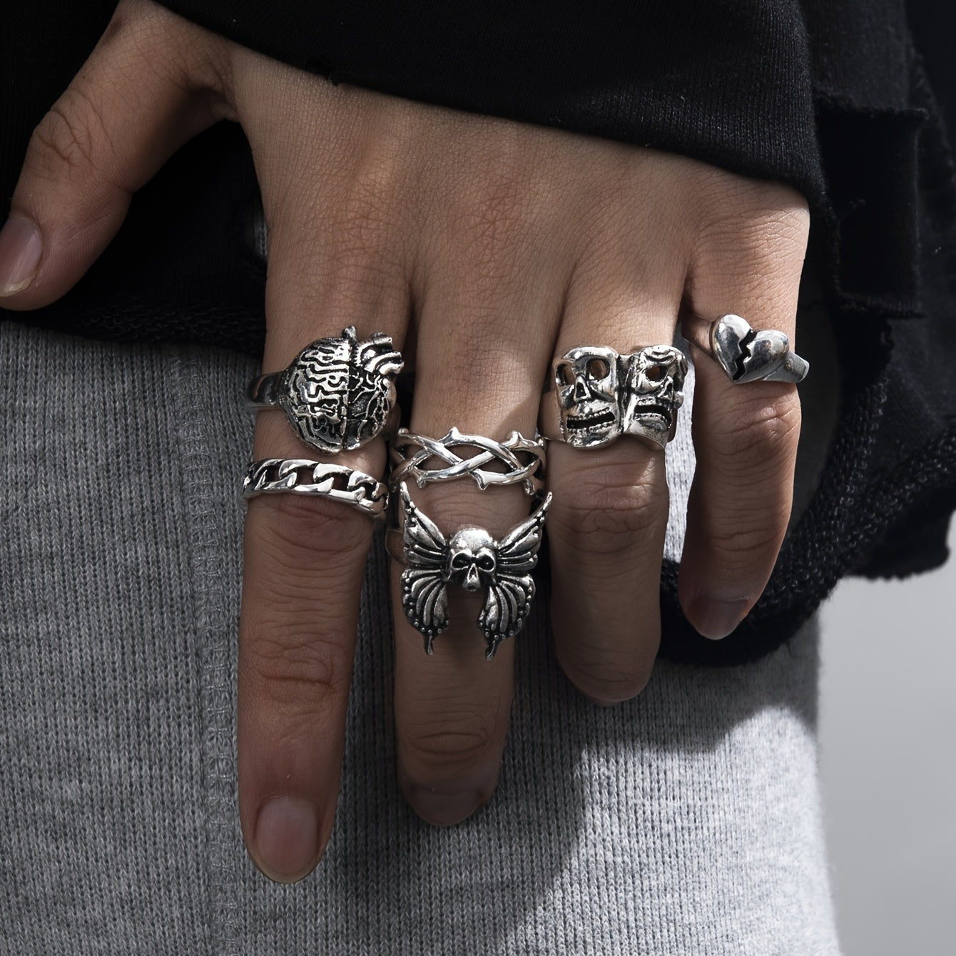 Enhance your style with this set of 6 punk-inspired metal rings. Perfect for a bold and edgy look.