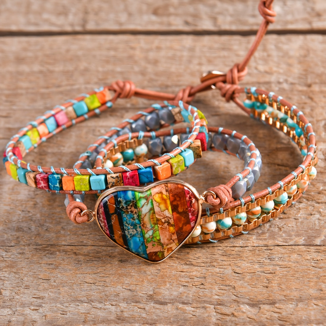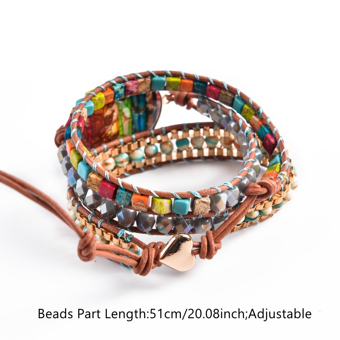 Experience the natural healing power of this 3-strand leather wrap bracelet with chakra gemstones. Achieve spiritual protection and mental health balance during meditation.