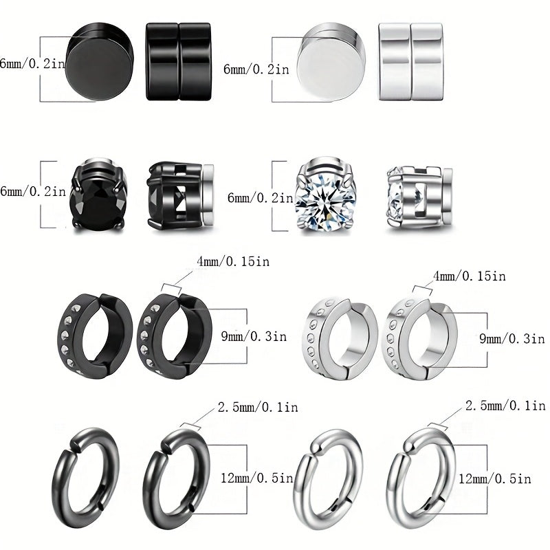 Get a stylish and hassle-free earring solution with these 8 pairs of magnetic stainless steel non-pierced zircon stud earrings suitable for men.