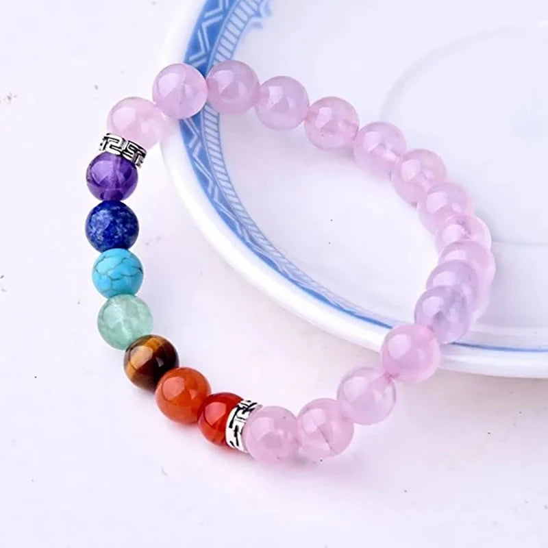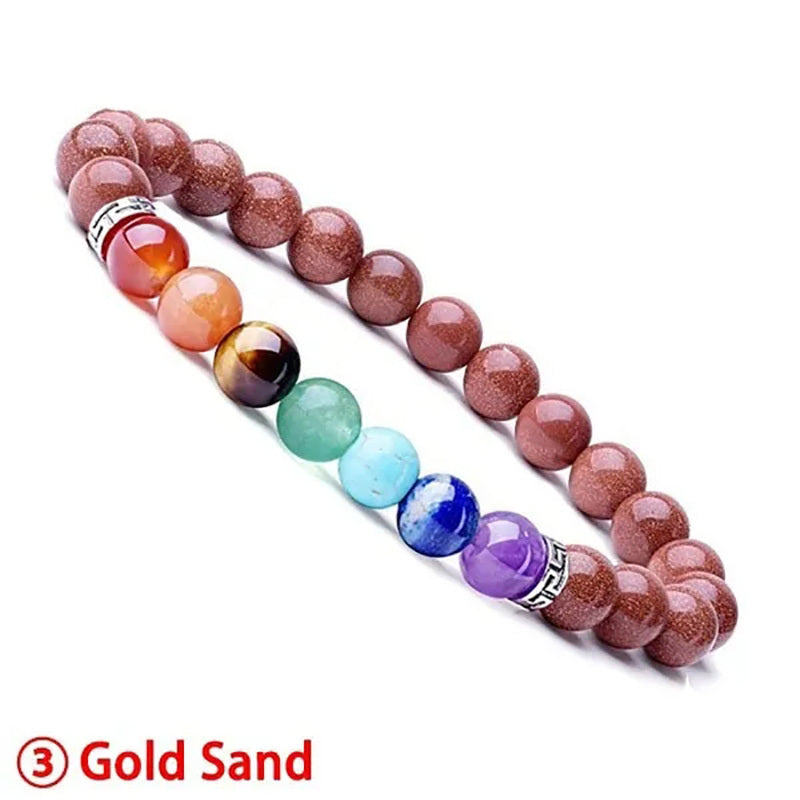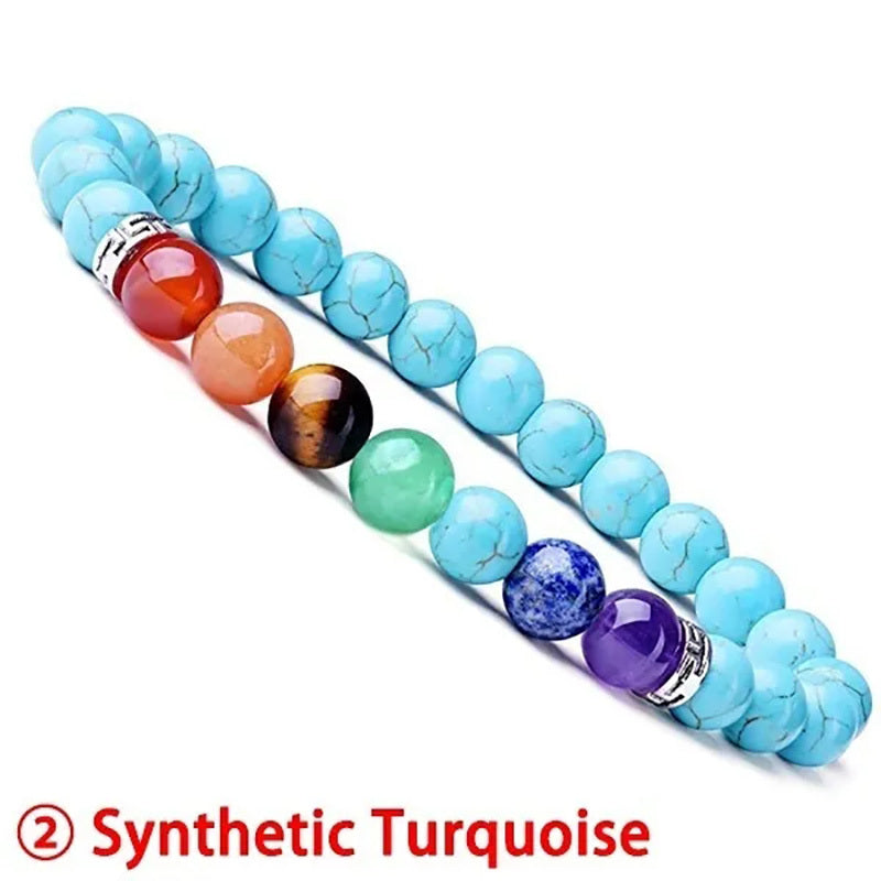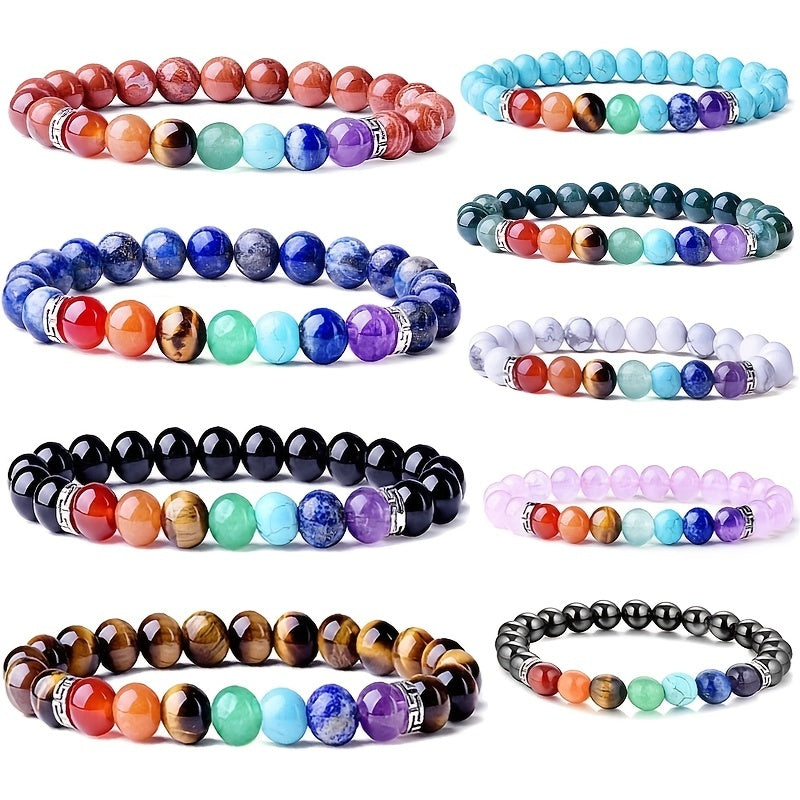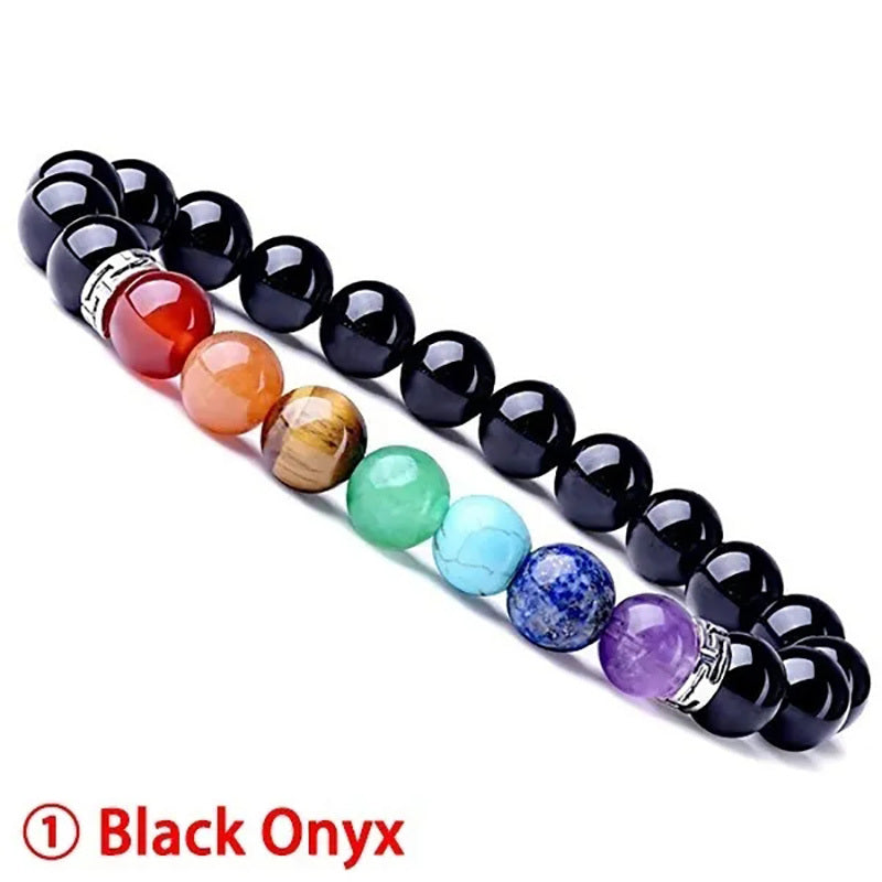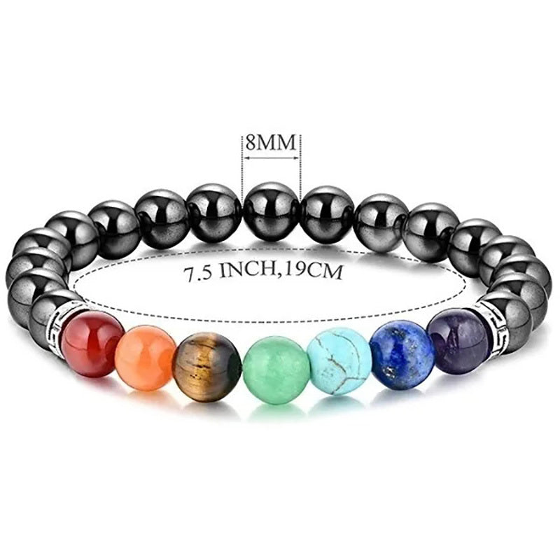 This bracelet features 8MM beads made of 7 chakra healing crystals, perfect for yoga and energy balancing. Made of natural gemstones with a stretch design for easy wear.