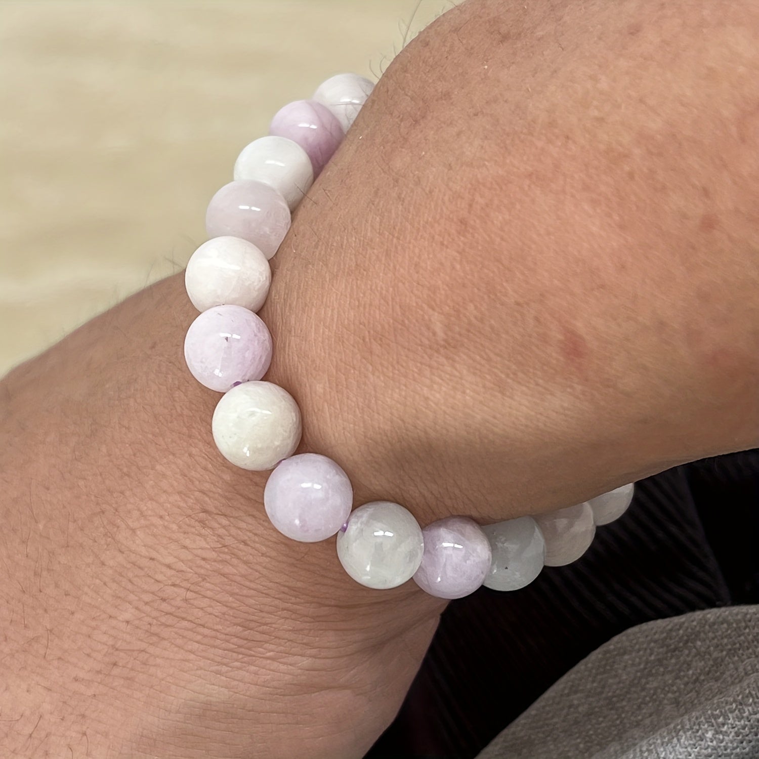 This beautiful Kunzite bracelet features 8mm semi-precious gemstones. It is perfect for both women and men seeking healing energy and positive vibes.