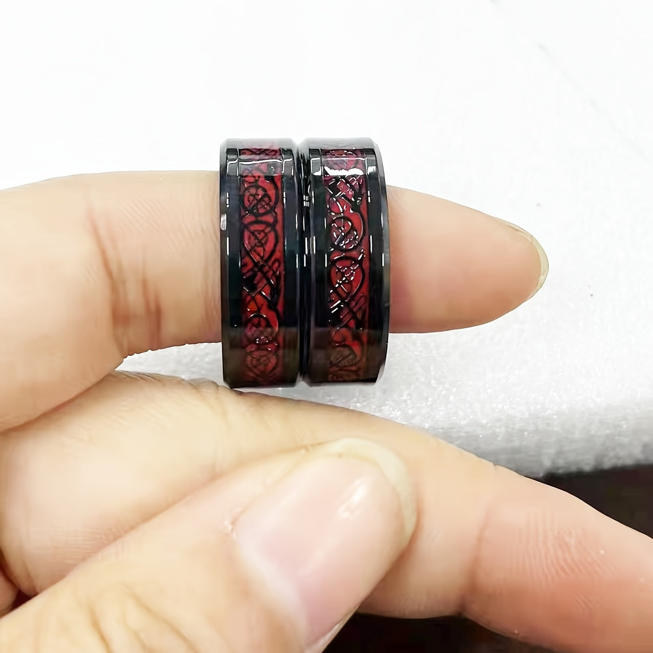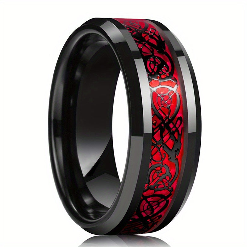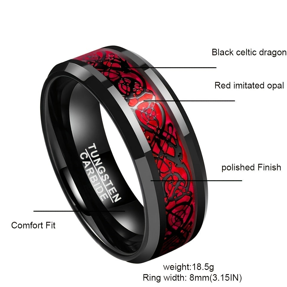 This unique ring features a dragon design inlaid with tungsten, perfect for weddings or everyday wear.