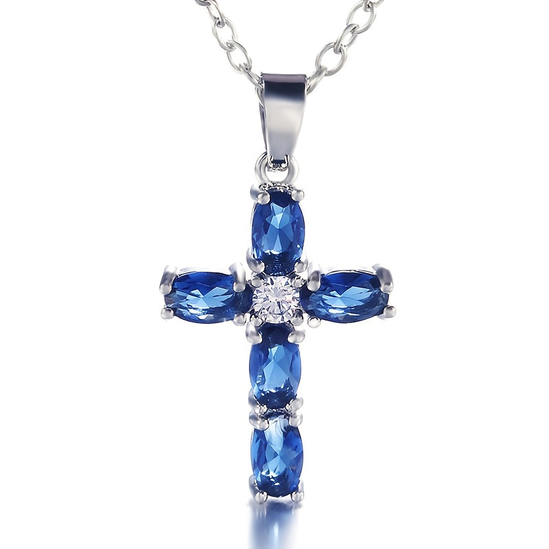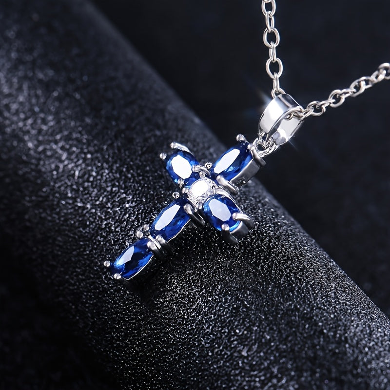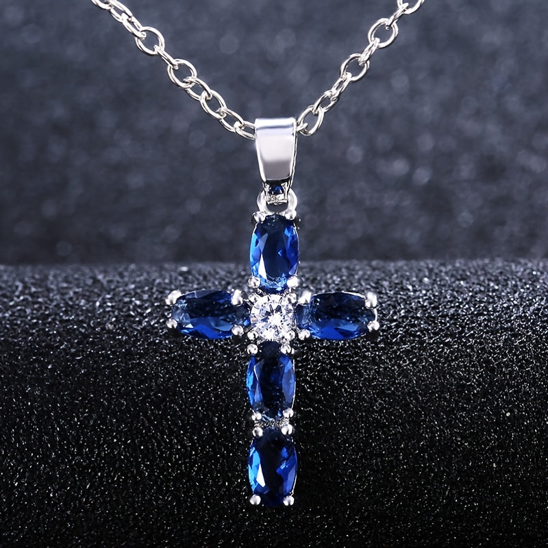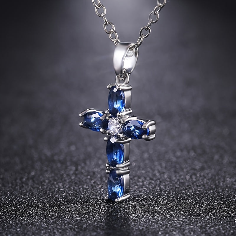 Elegant necklace featuring a cross pendant with gemstones, perfect for bridal wedding, parties, and anniversaries.