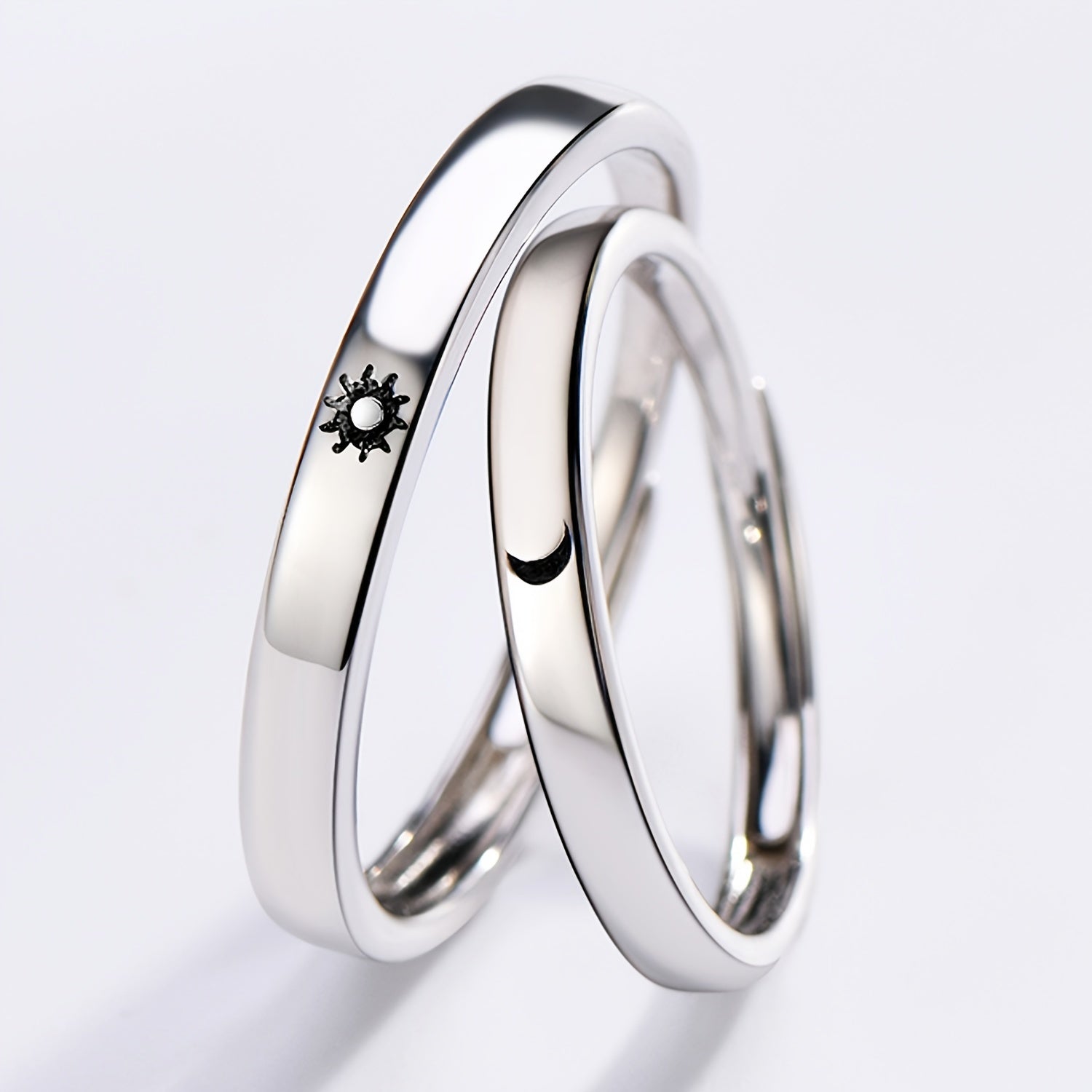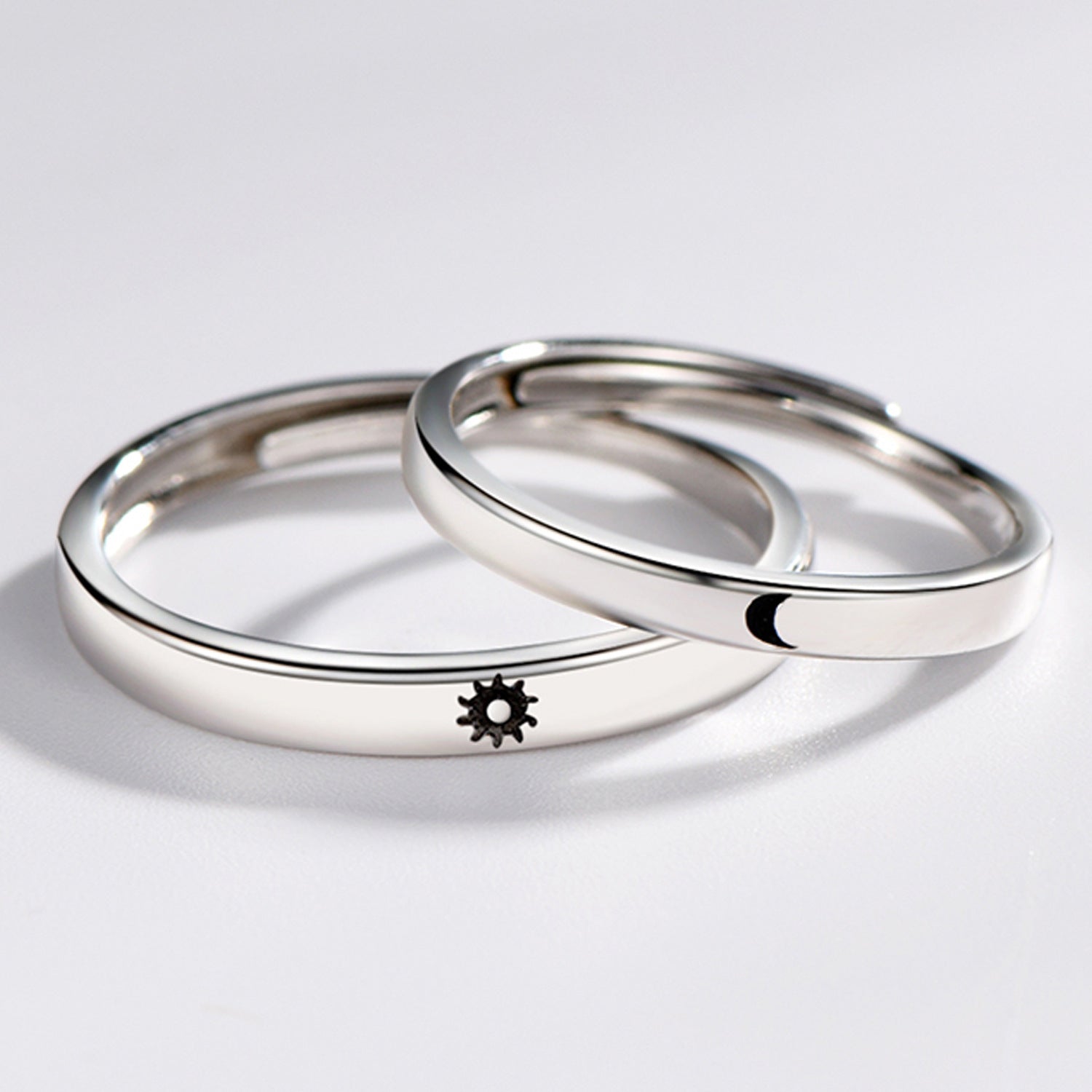 925 Silver Sun & Moon Couple Ring Boyfriend Girlfriend Rings