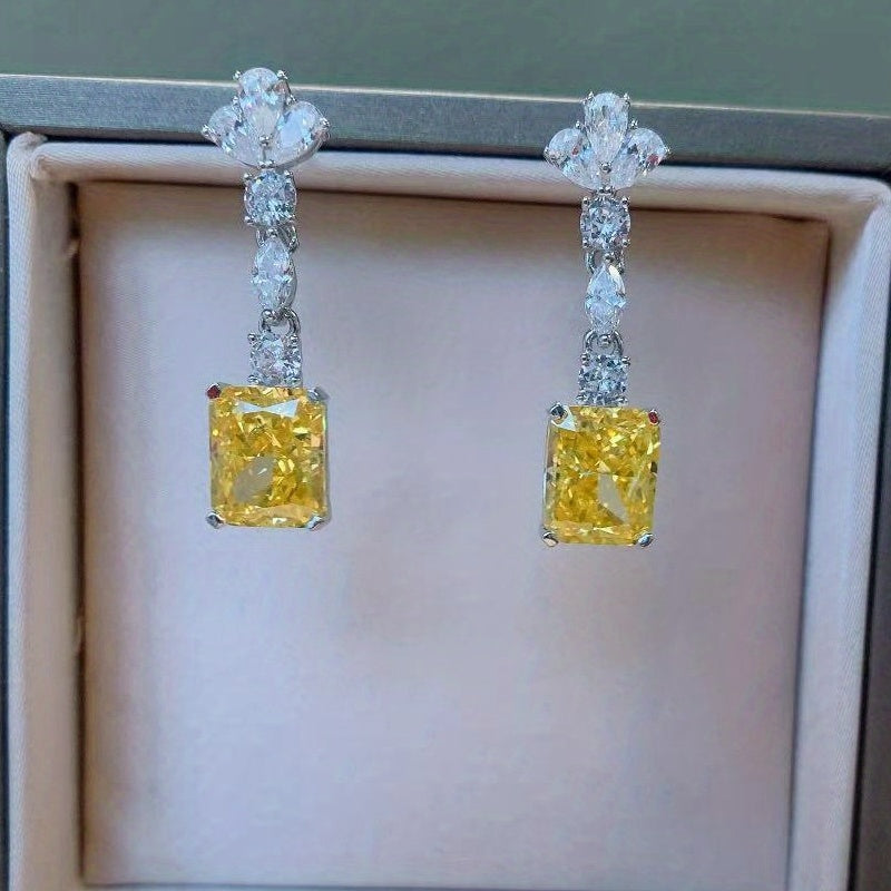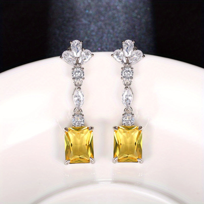 Exquisite 925 silver plated earrings with sparkling zircon and radiant citrine stones. Perfect for bridal, engagement, and wedding occasions.