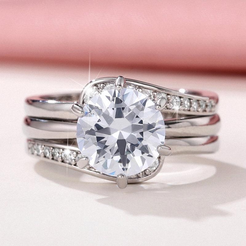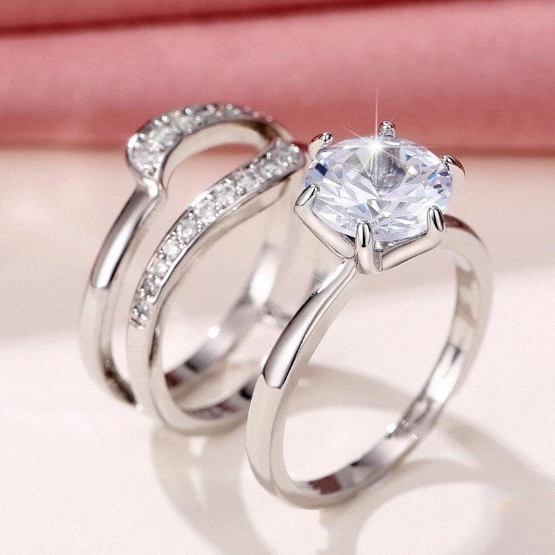 This stunning ring set is perfect for an anniversary gift or special occasion. Made with 925 silver plated metal and shimmering zircon crystals, it's a beautiful addition to any outfit.