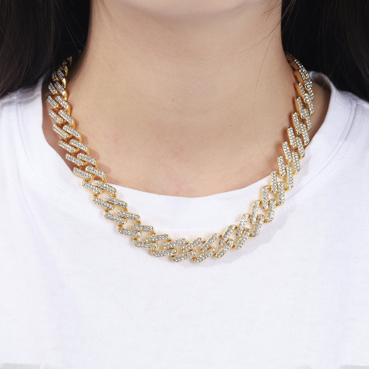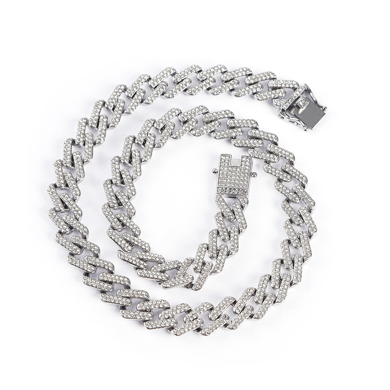 This stylish alloy necklace is perfect for men or women. Featuring a geometric rhombus design on a Cuban chain, it makes a great gift for couples or individuals.