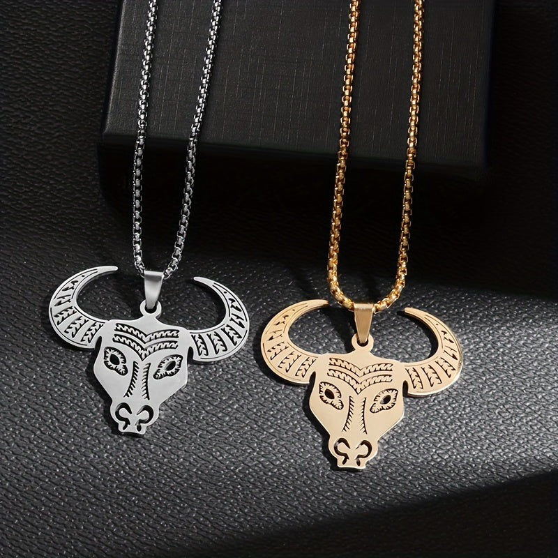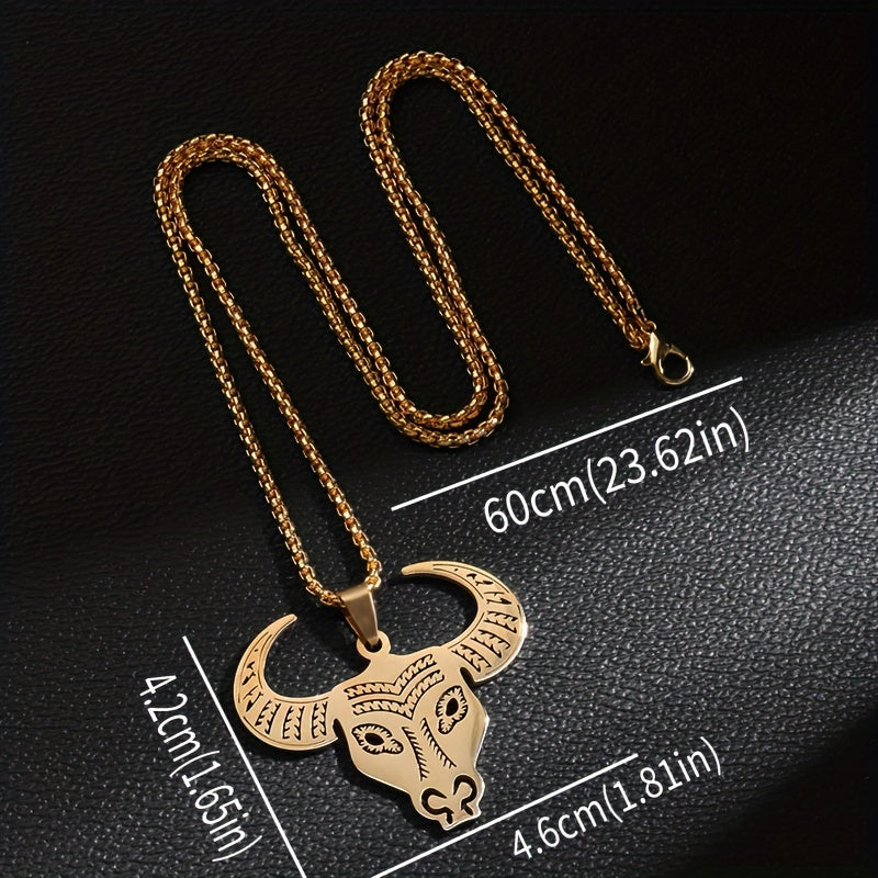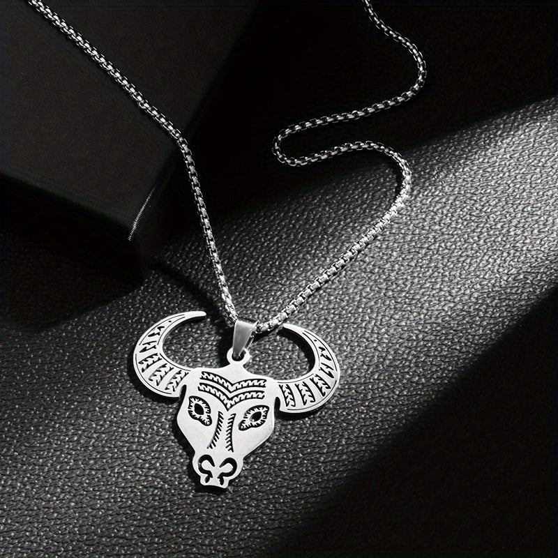Make a bold statement with this classic animal-themed stainless steel pendant necklace featuring a hollowed out bull head design. Perfect for both men and women who love punk rock style.