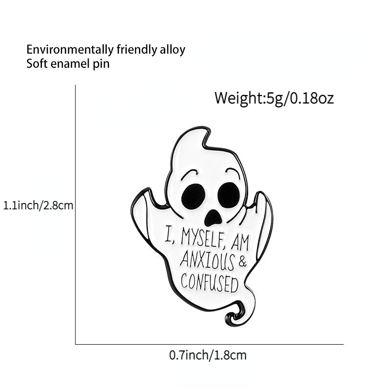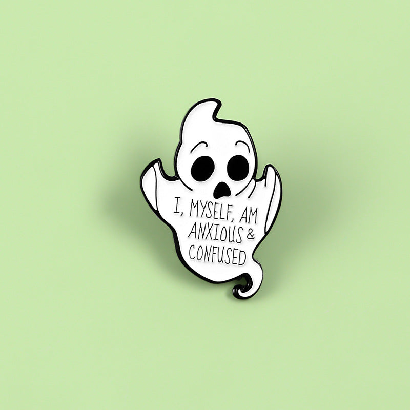 Express your anxiety and confusion with this set of enamel pins featuring anime and cartoon characters.