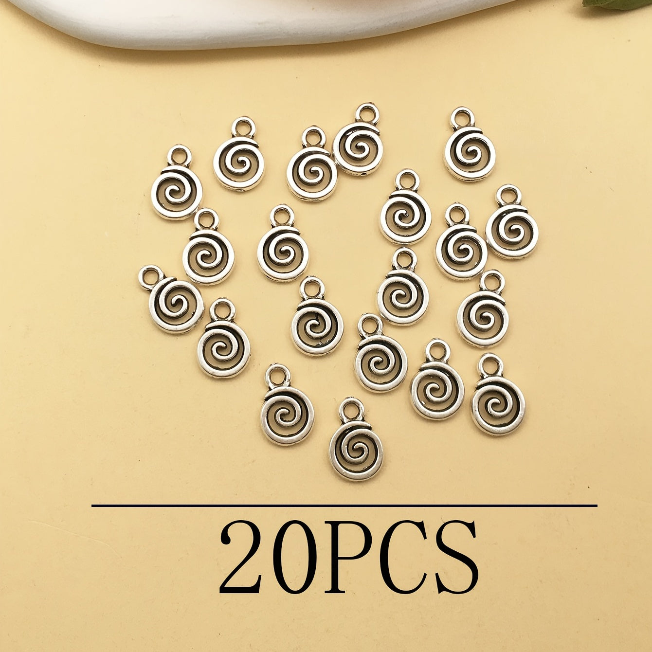 Set of 20 zinc alloy charms in antique silver finish, perfect for crafting earrings, bracelets, and necklaces. Ideal for artificial jewelry making projects.