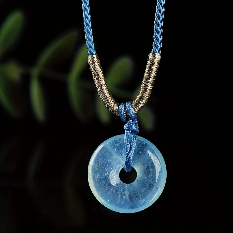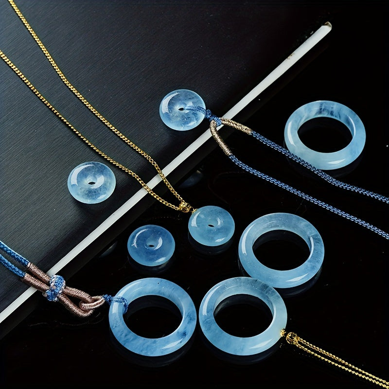 This beautiful natural crystal aquamarine jewelry set includes a peace buckle ring, pendant, and necklace. Perfect as a parent-child gift.