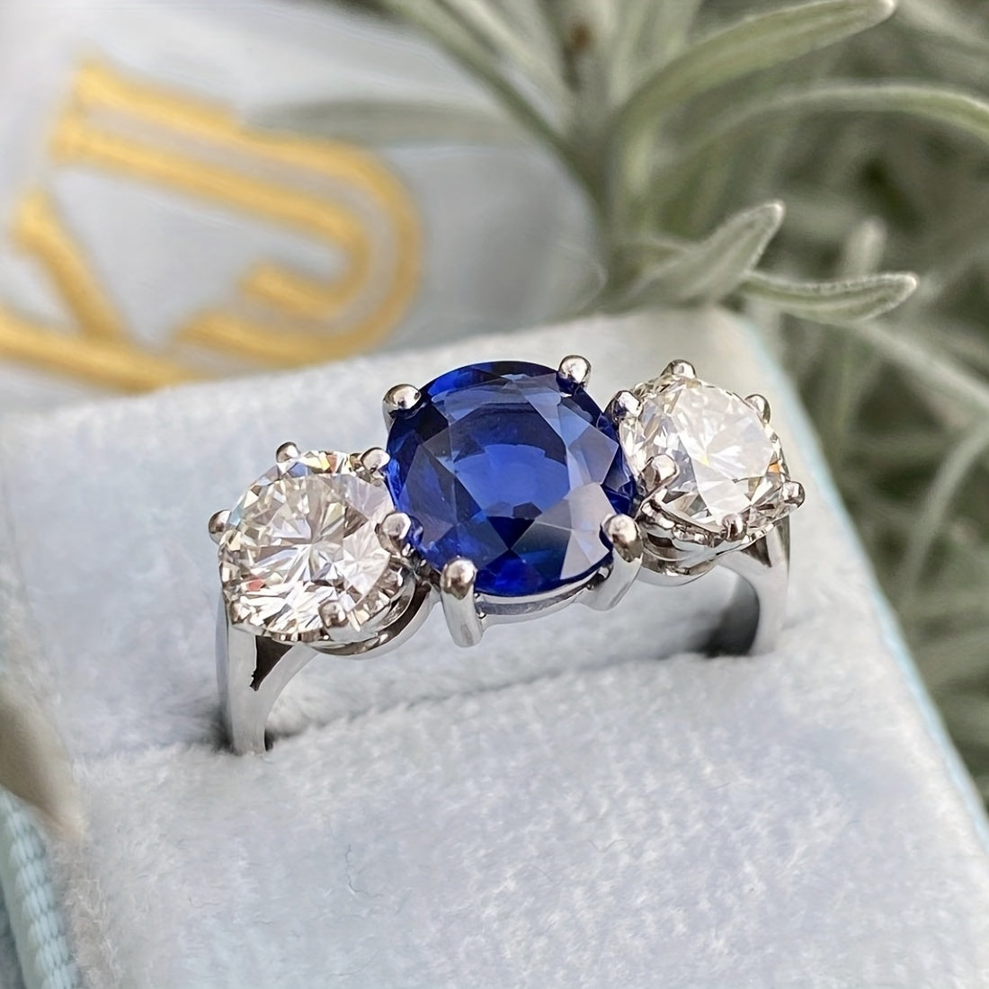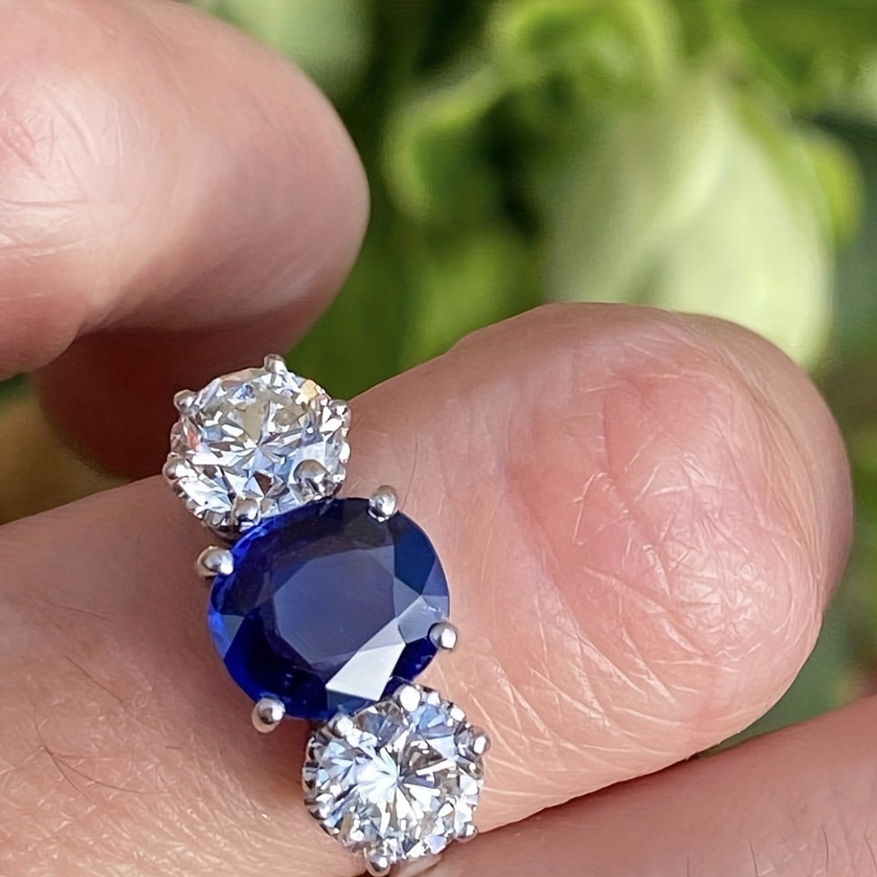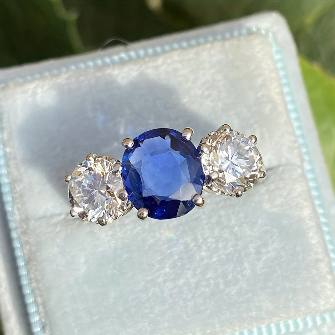 This ring is perfect for formal occasions like parties, engagements, and weddings. It features artificial diamonds and sapphire inlays, adding a touch of elegance to your look.