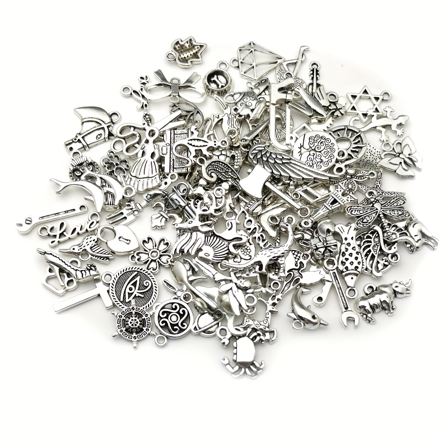 Assorted 10-50pcs Metal Alloy Silver Charms for DIY Jewelry Making