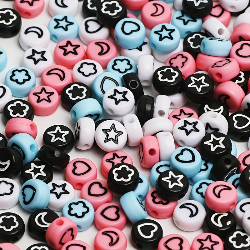Get creative with 100, 200, or 300 colorful assorted pattern flat round acrylic beads. Perfect for DIY bracelets, necklaces, key chains, and other jewelry projects.