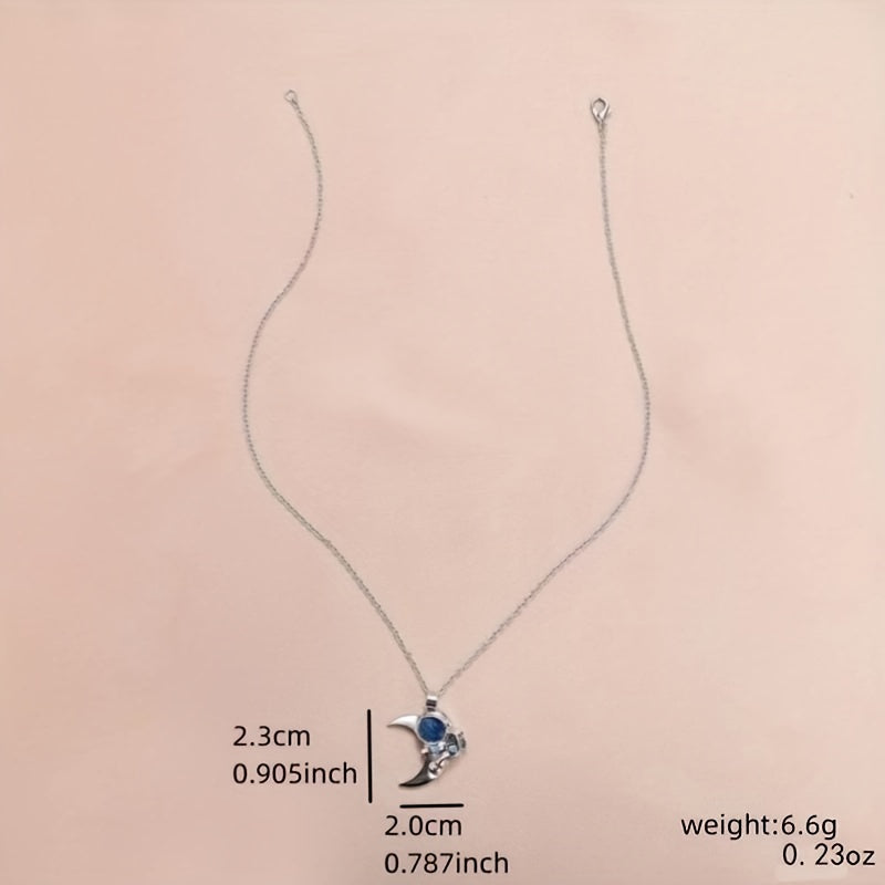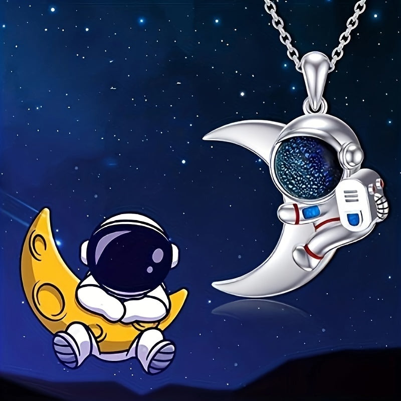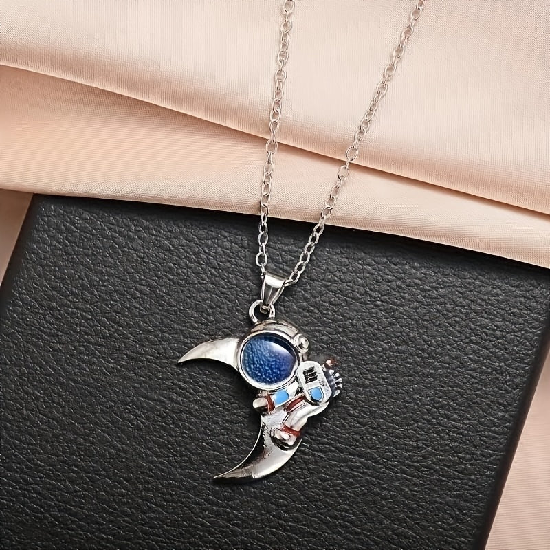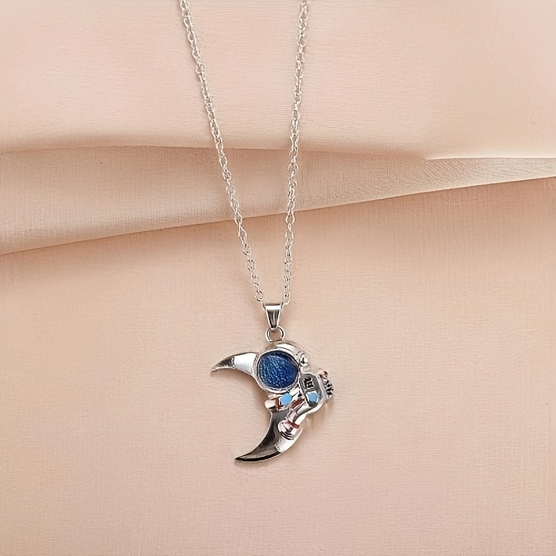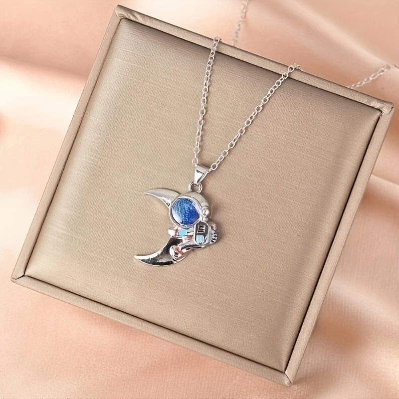 Astronaut Pendant Necklace with Moon - Anniversary Birthday Jewelry