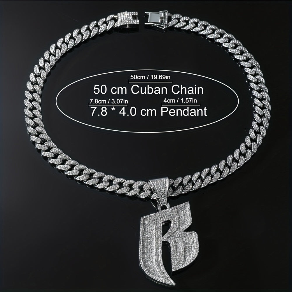 Stylish necklace featuring a B initial pendant with rhinestones on a Cuban link chain.