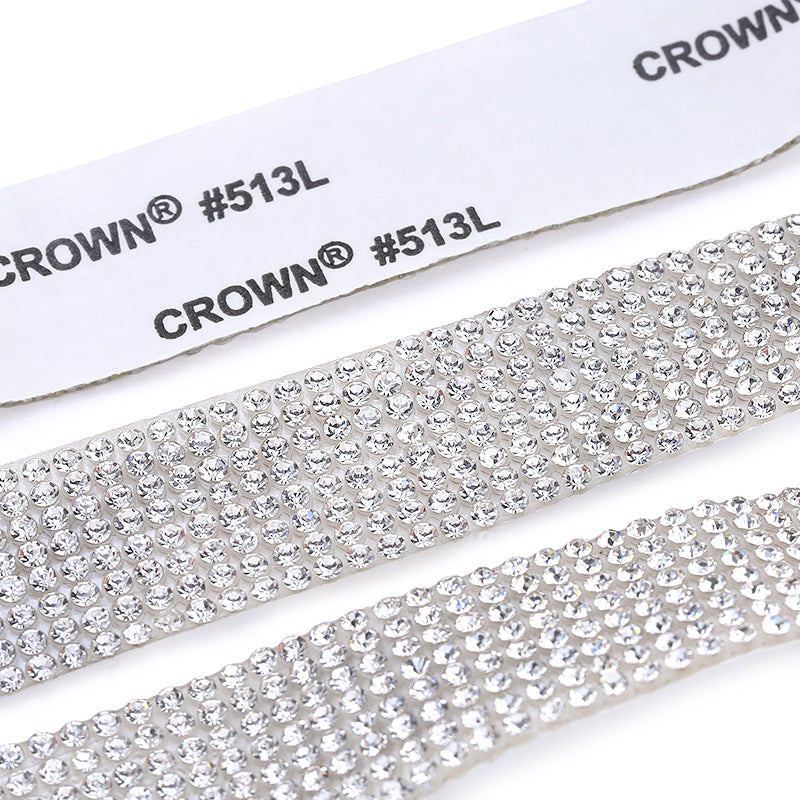 This self-adhesive drill strip is perfect for adding decorative elements to clothing accessories. Simply tear off the back glue and stick the strip onto your desired surface.