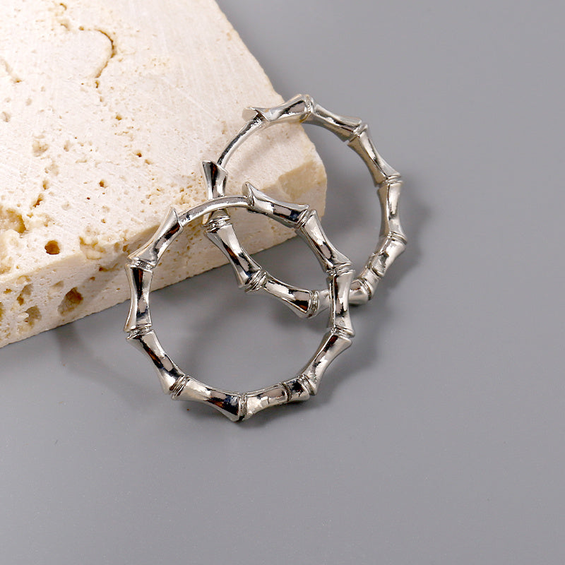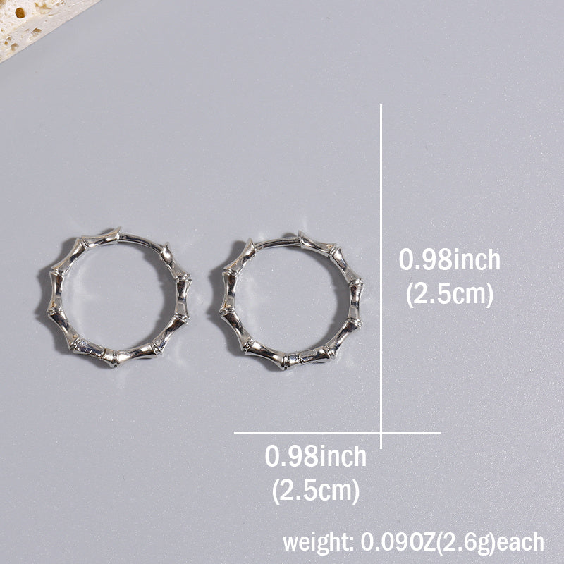 Bamboo Joint Hoop Earrings Bohemian Minimalist Style Alloy Silver Plated Jewelry