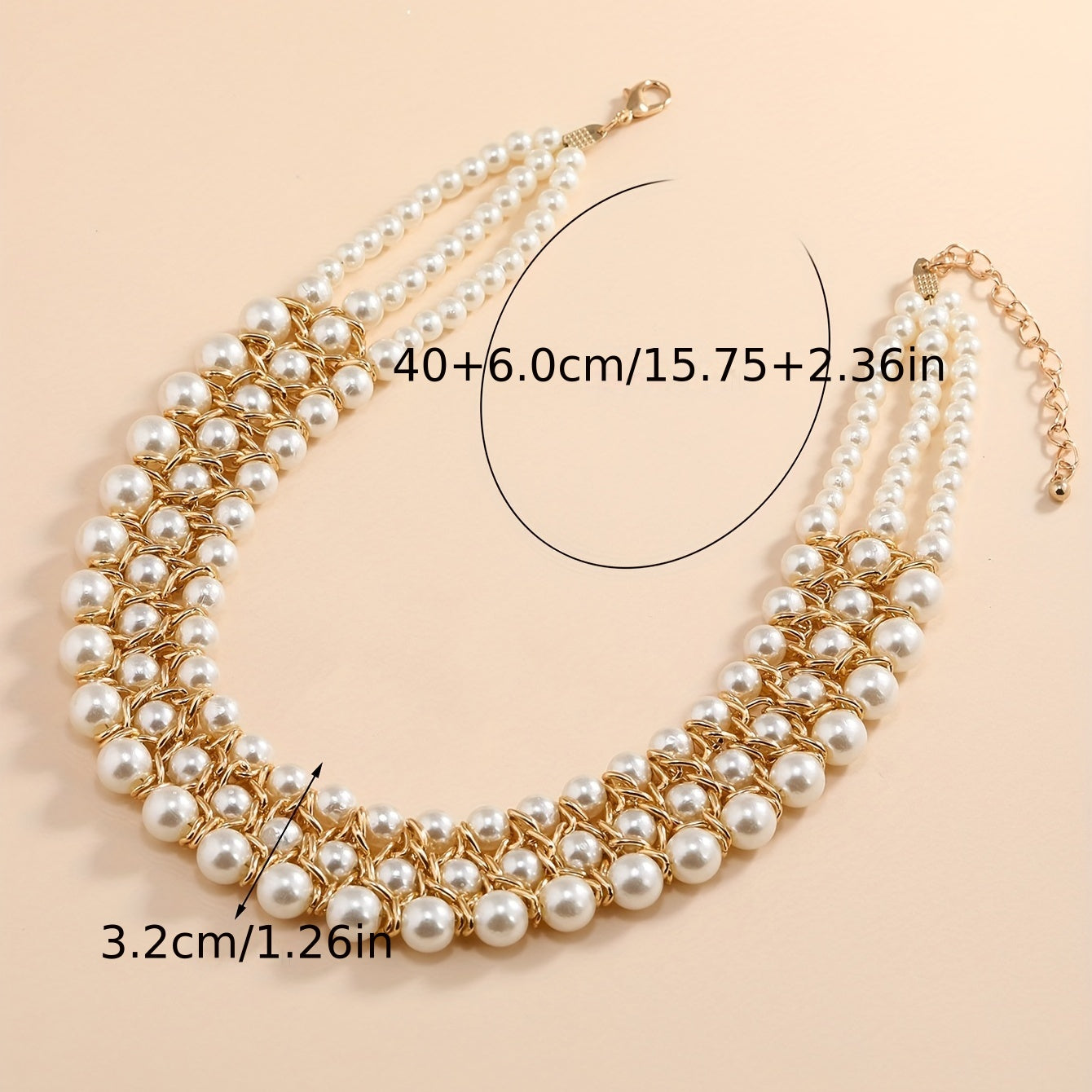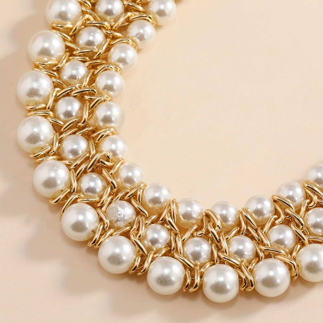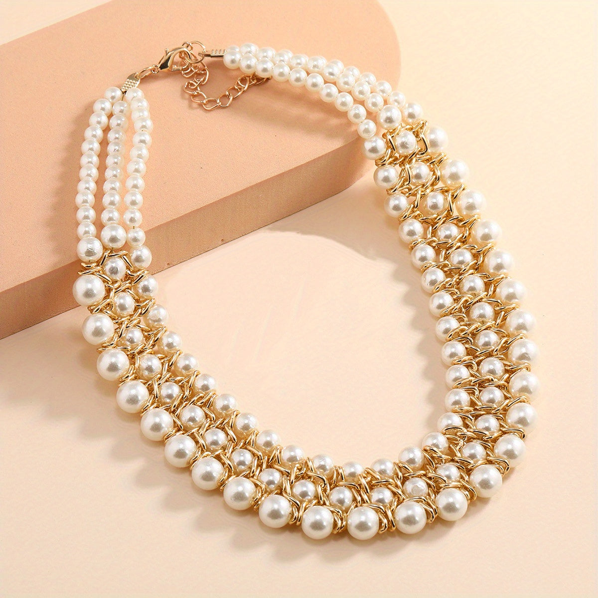 Add a touch of elegance to your outfit with this Baroque style three-row faux pearl chunky chain necklace. Perfect for parties and special occasions.