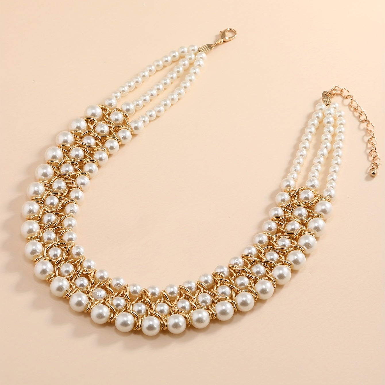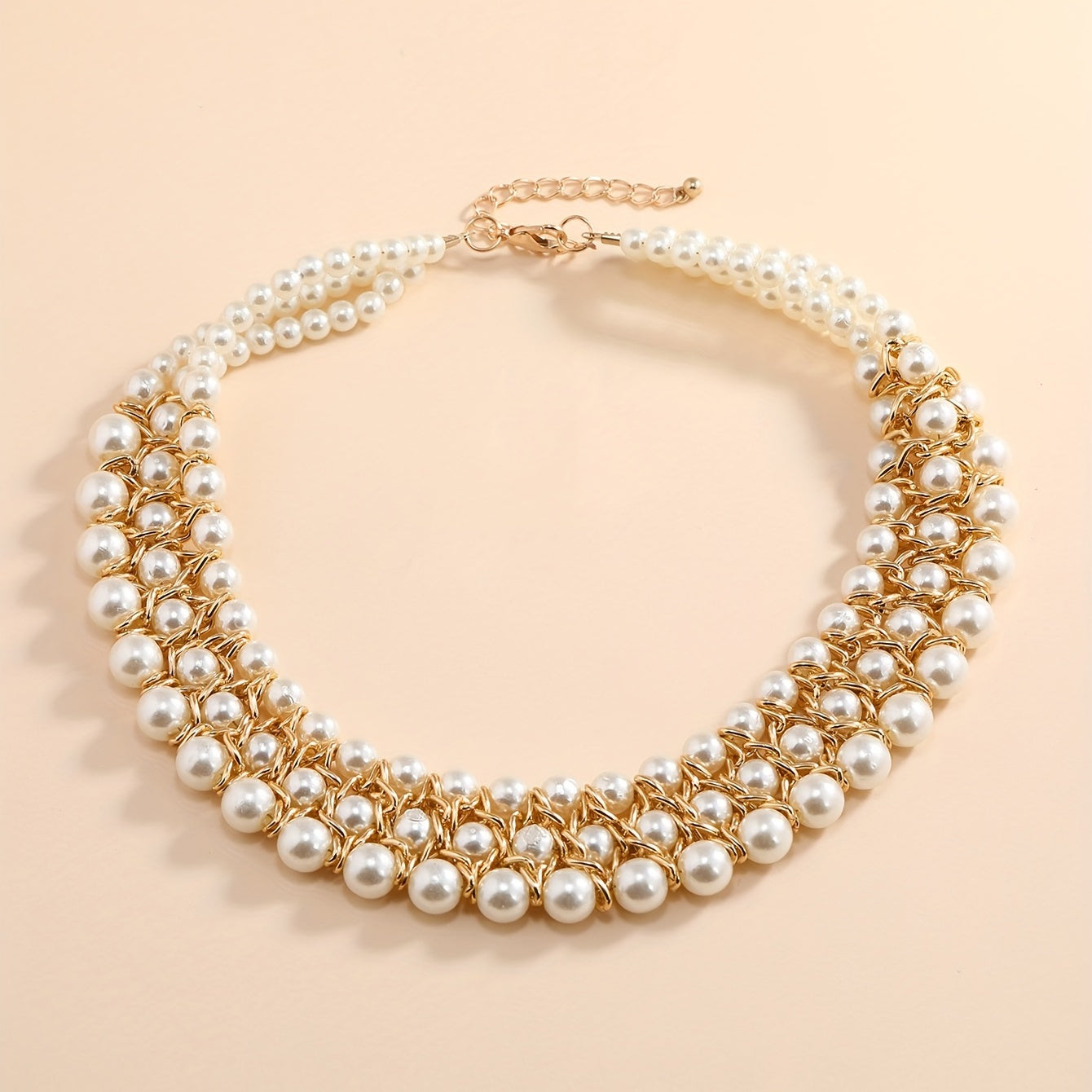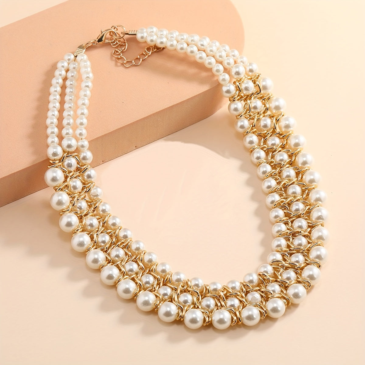 Add a touch of elegance to your outfit with this Baroque style three-row faux pearl chunky chain necklace. Perfect for parties and special occasions.
