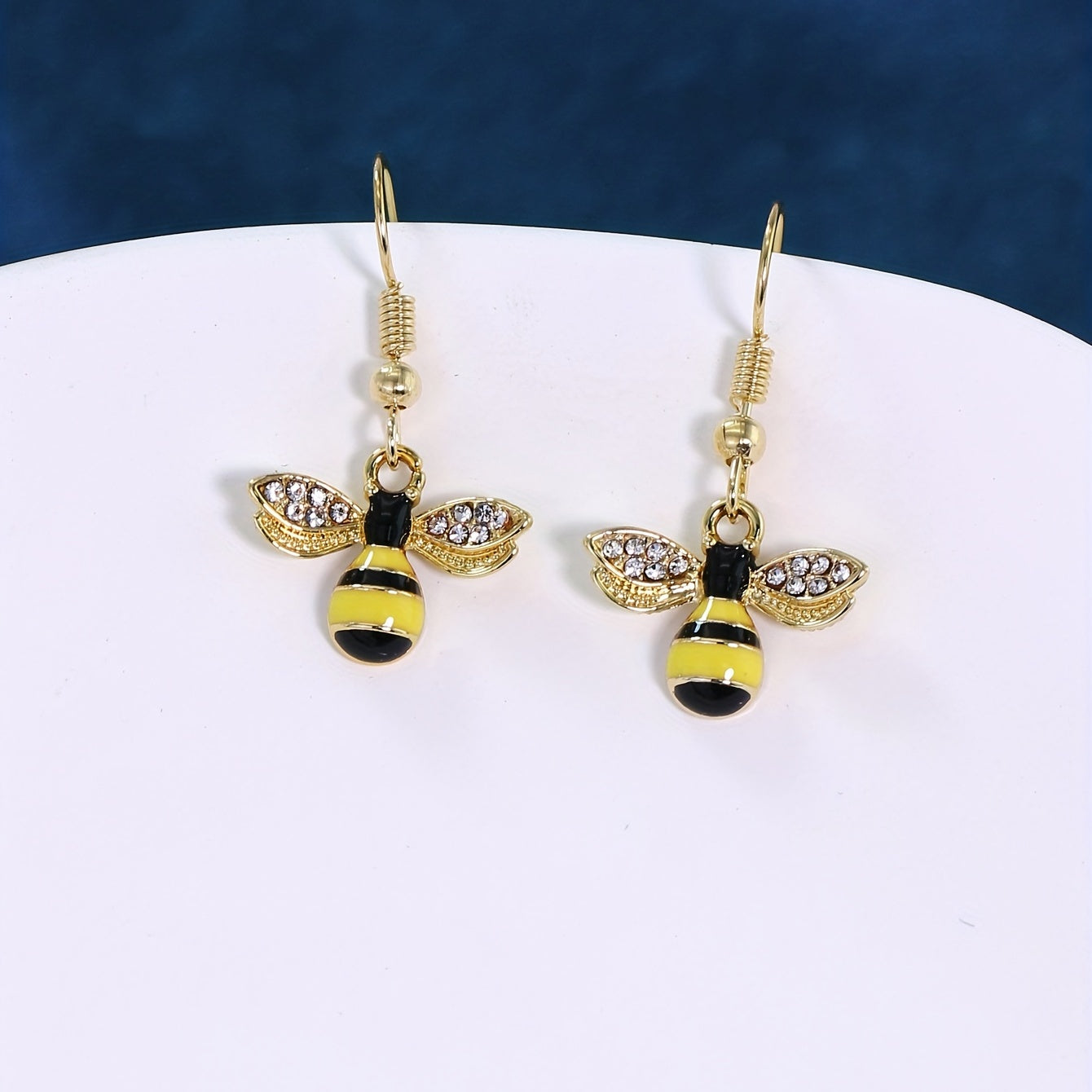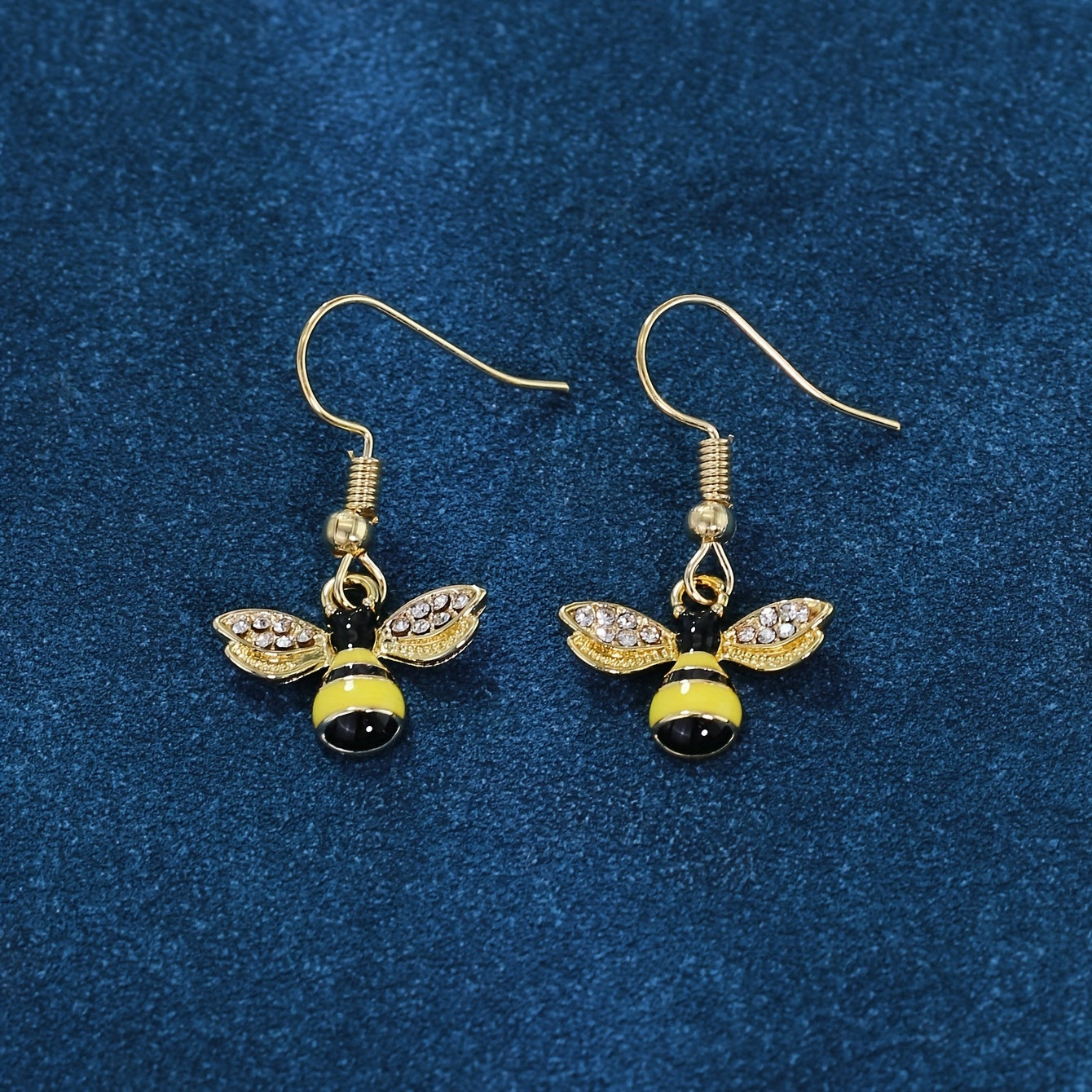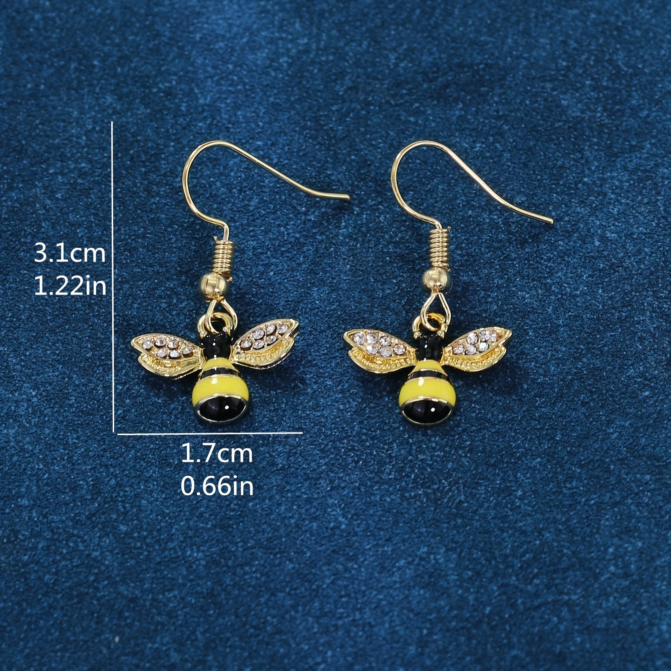 These minimalist style dangle earrings feature a bee inlaid with sparkling rhinestones. Made of zinc alloy with 14K plating, perfect for daily casual wear.