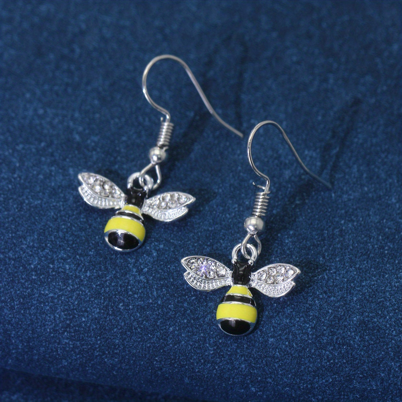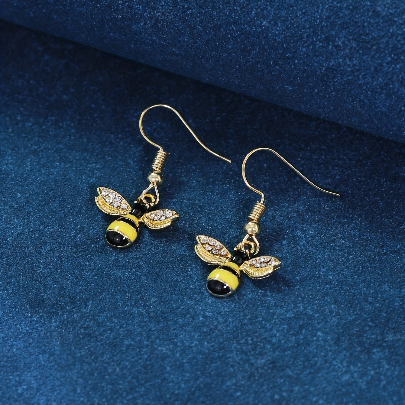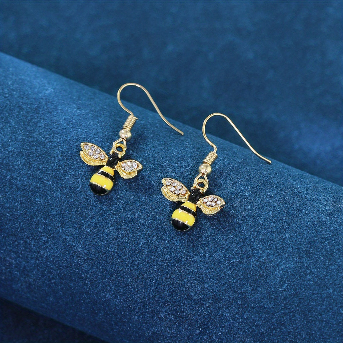 These minimalist style dangle earrings feature a bee inlaid with sparkling rhinestones. Made of zinc alloy with 14K plating, perfect for daily casual wear.