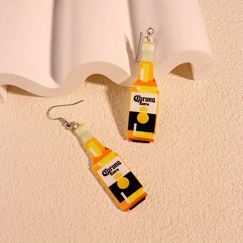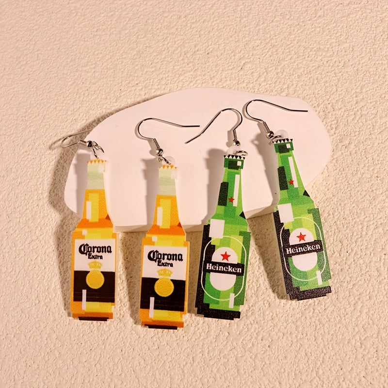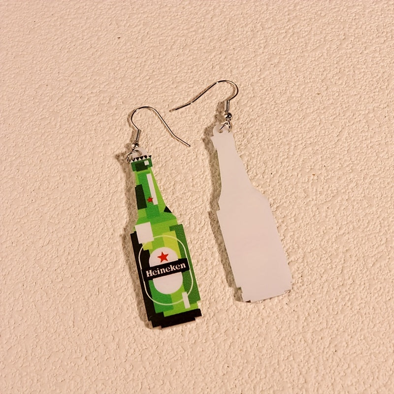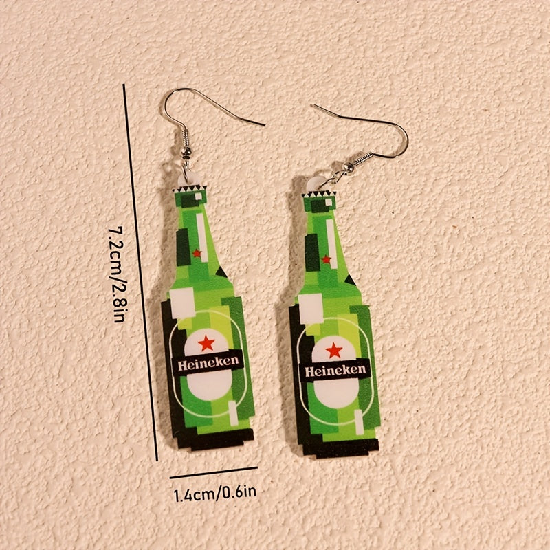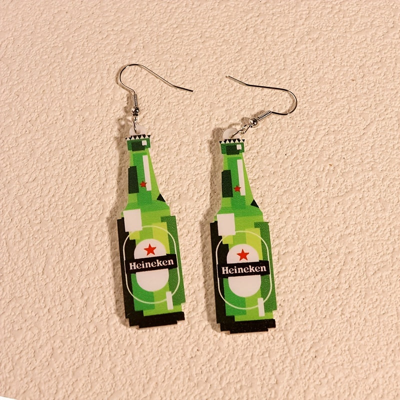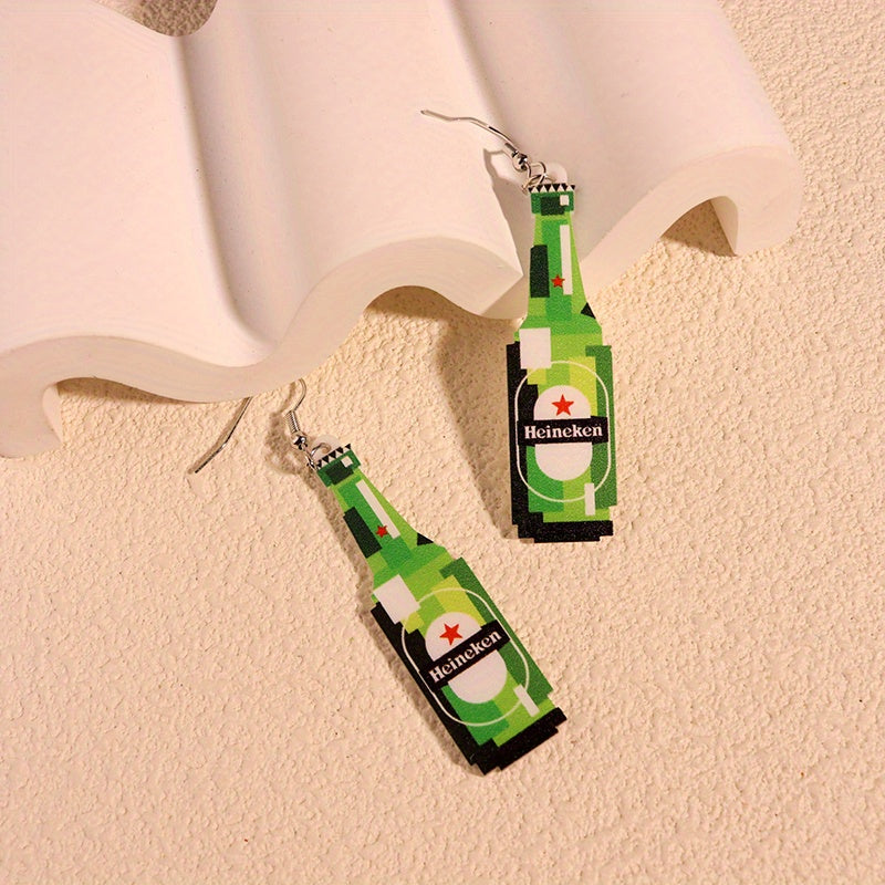 Unique and stylish beer bottle graffiti pattern dangle earrings made from acrylic, perfect as a gift for women and girls.