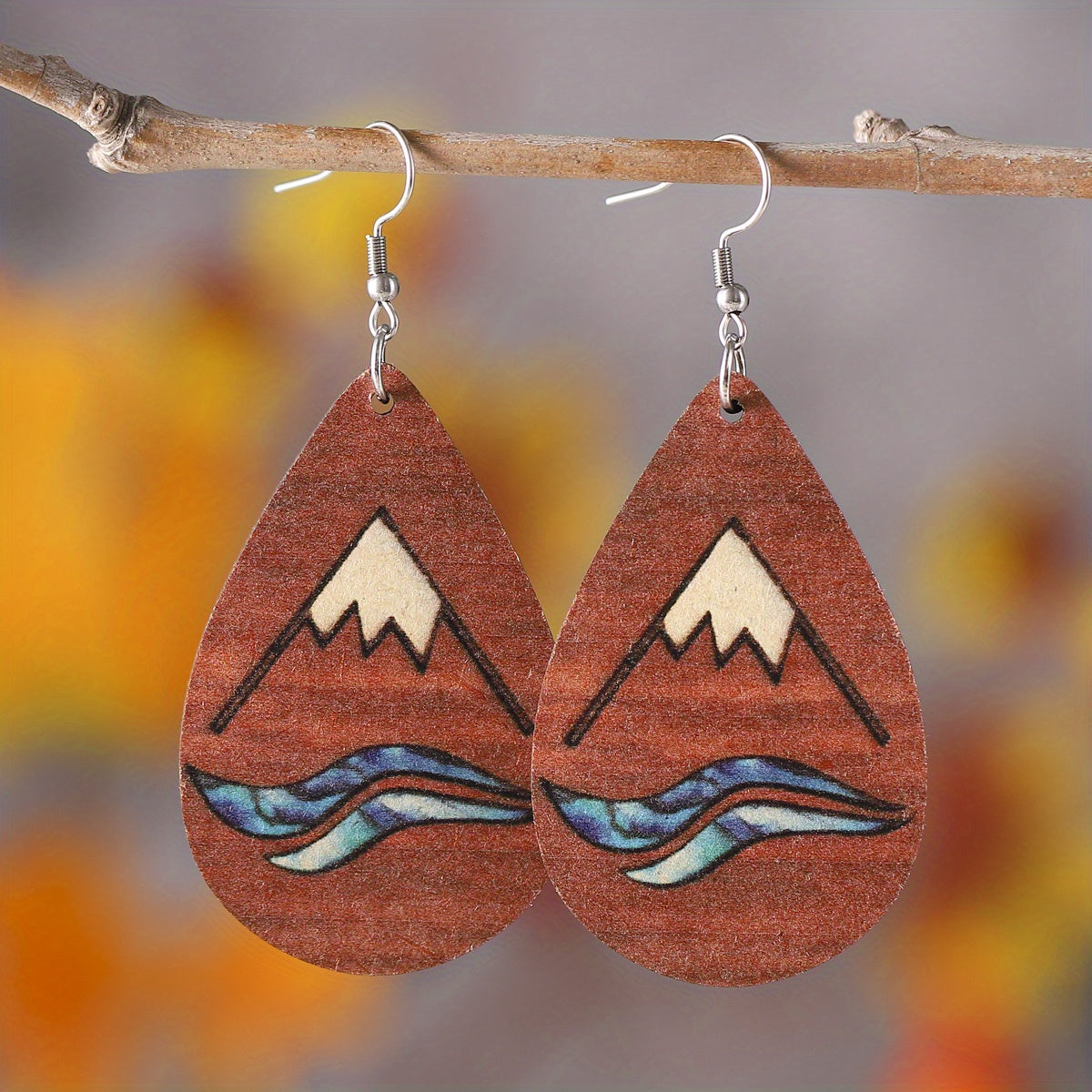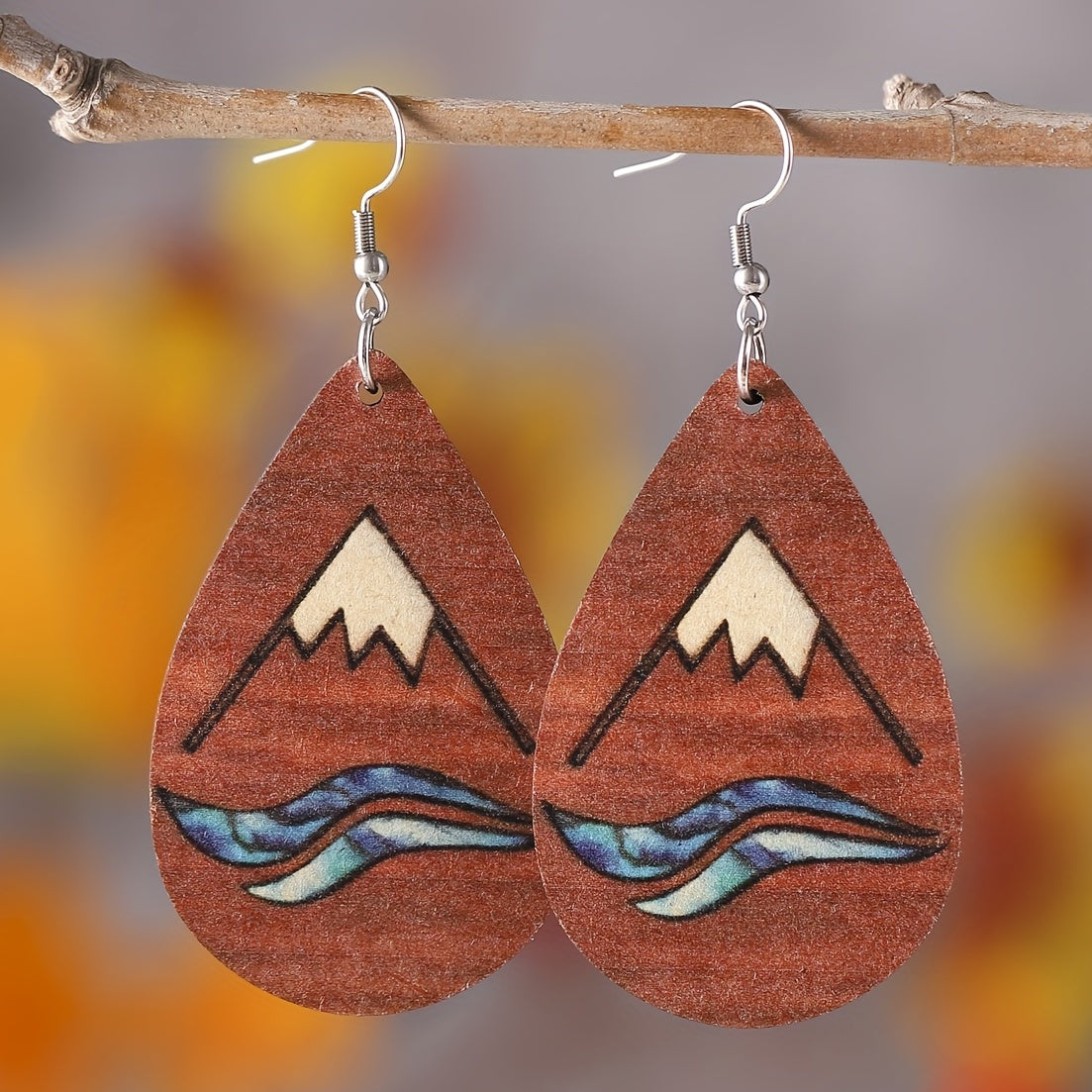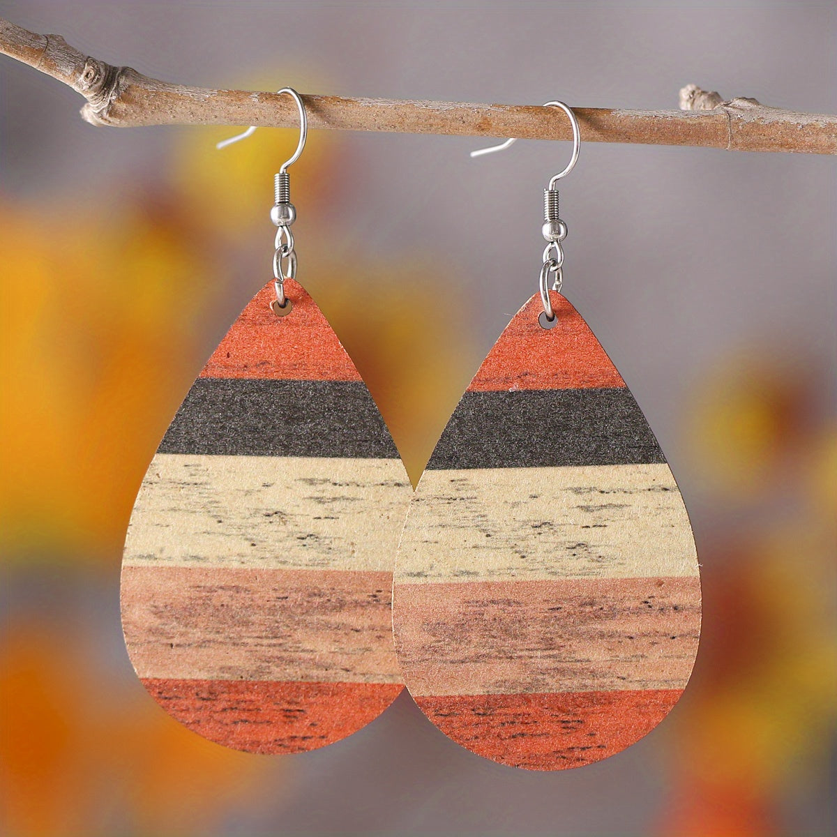 Bohemia Striped Abstract Leaf Wooden Dangle Earrings