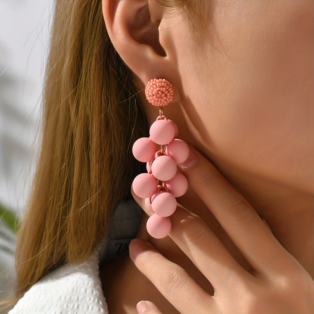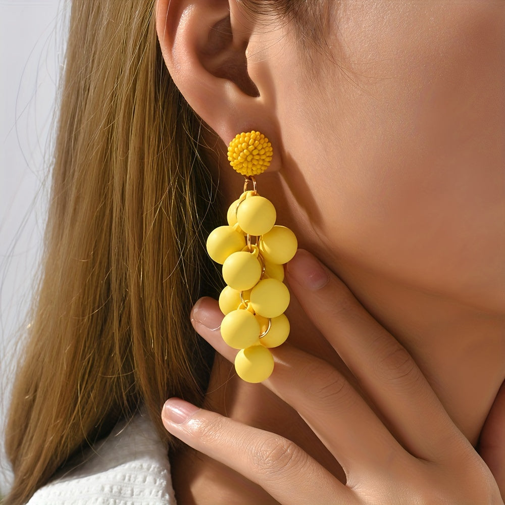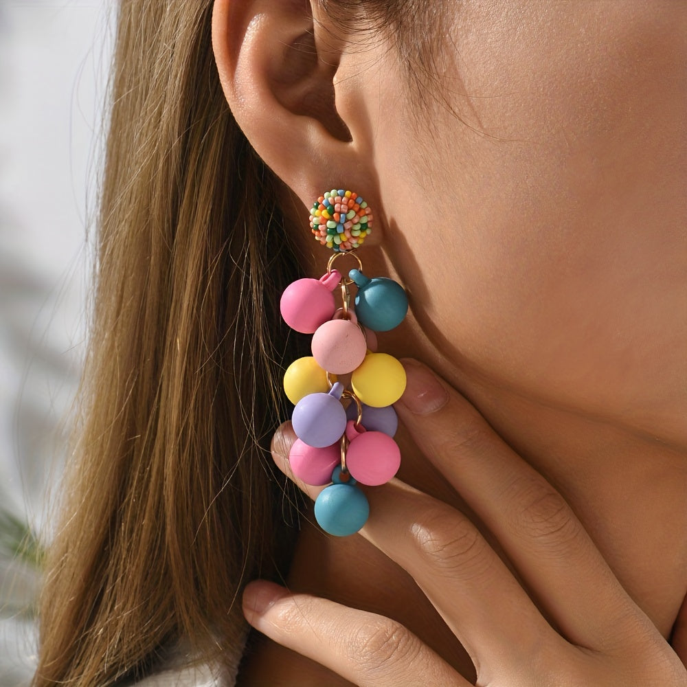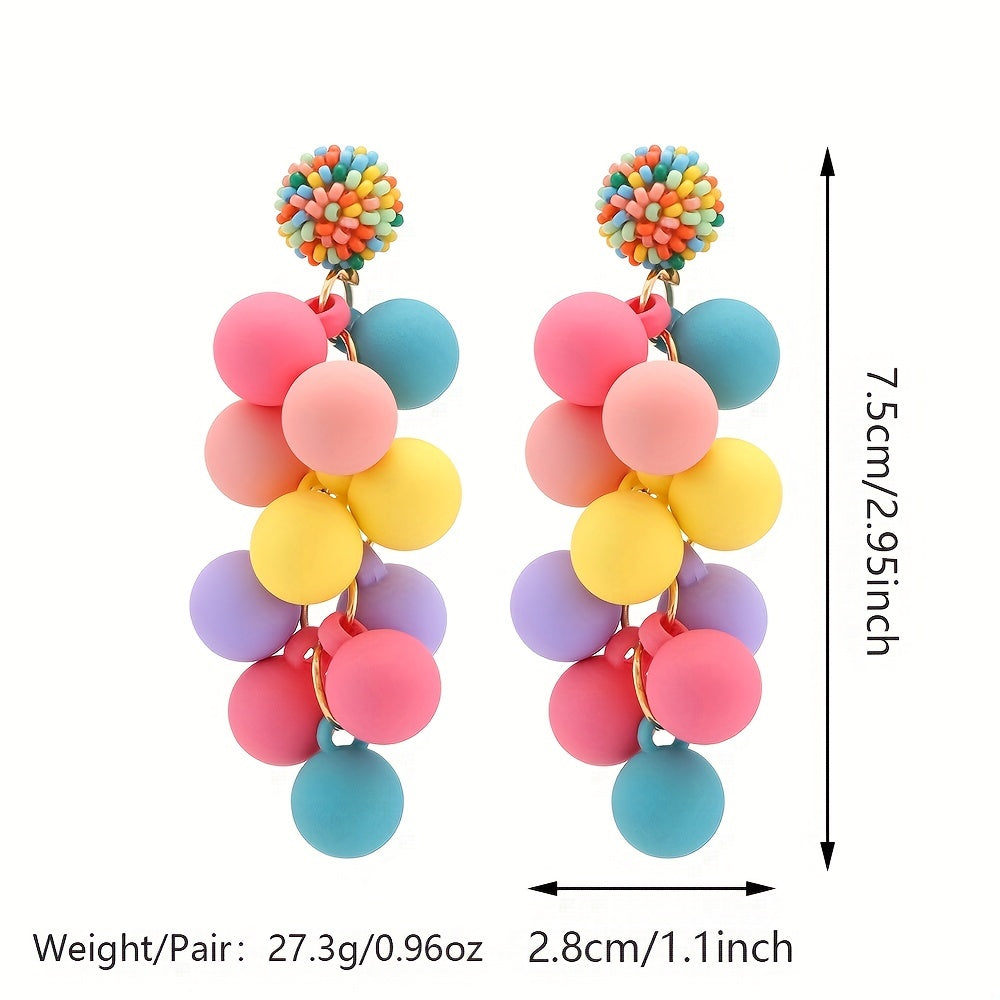 These colorful dangle earrings feature acrylic balls in a bohemian style. They make a delicate and vibrant gift for women and girls.