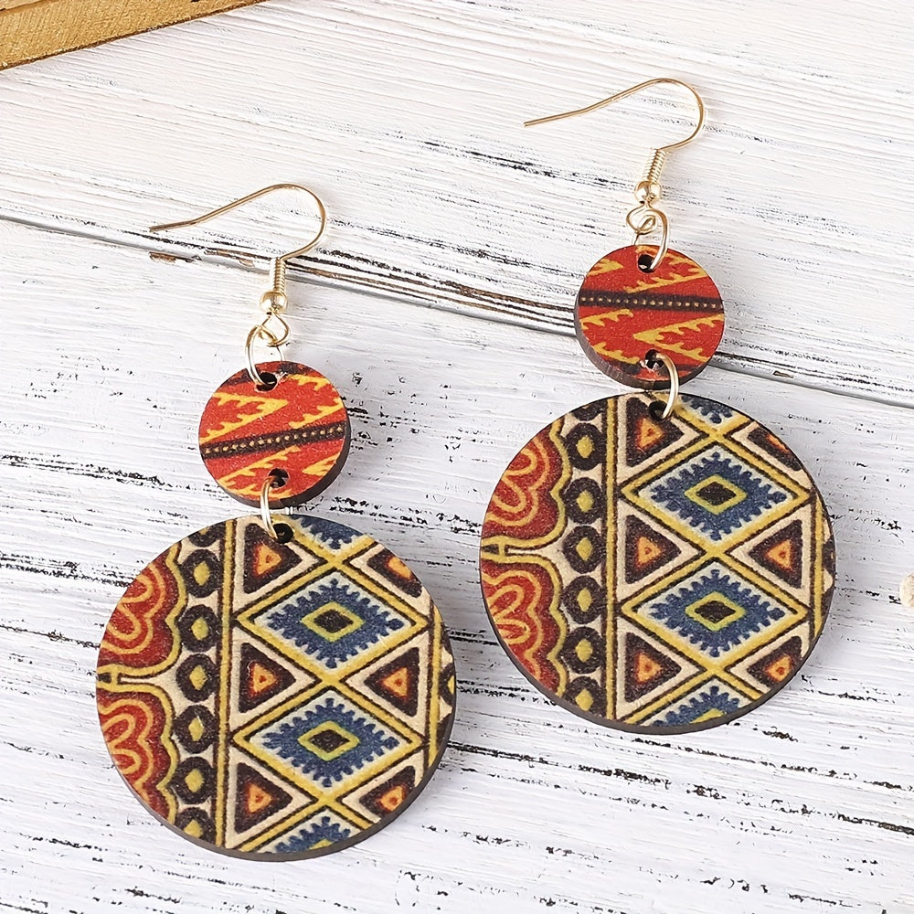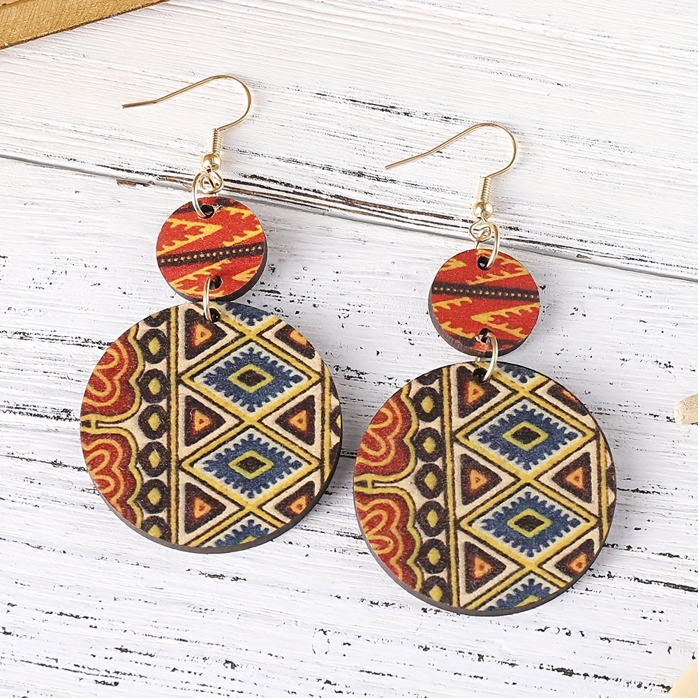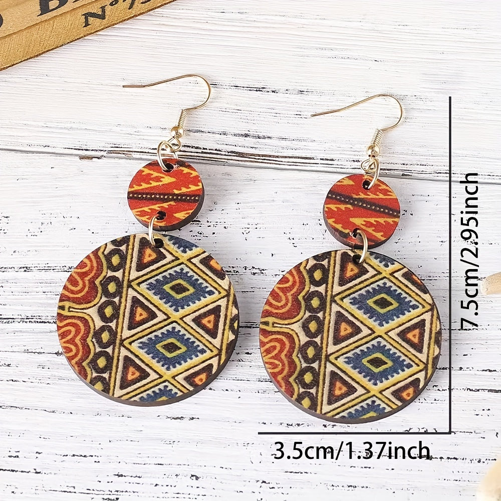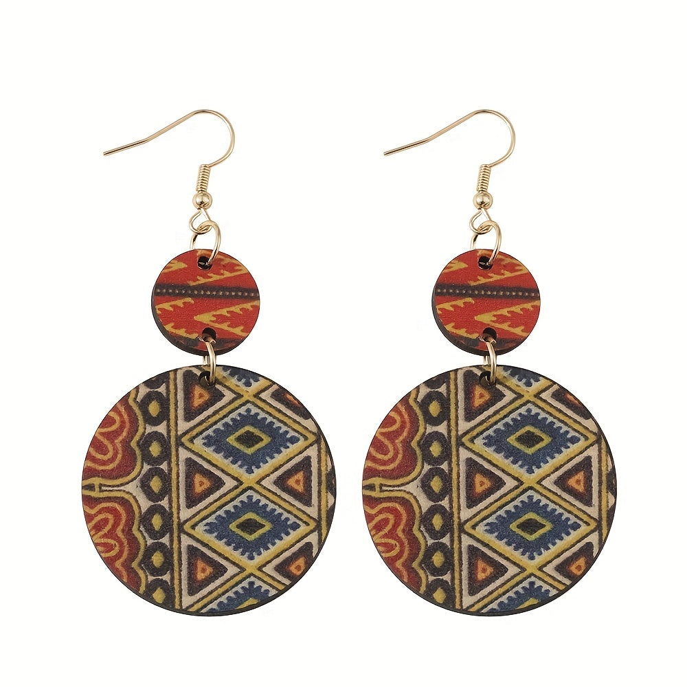 Unique retro-inspired dangle earrings featuring African geometric patterns. The perfect gift for women and girls who love bohemian style.